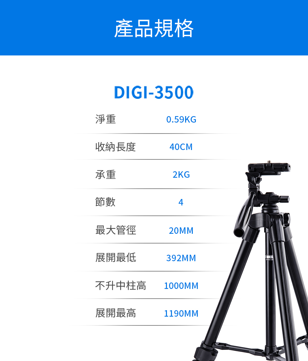 FOTOPRO DIGI-3500 輕巧一體式平台腳架組