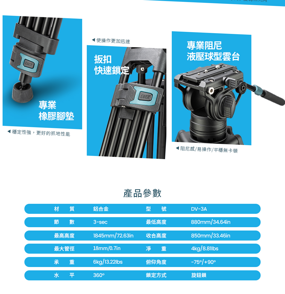 DV-3A 專業攝影三腳架