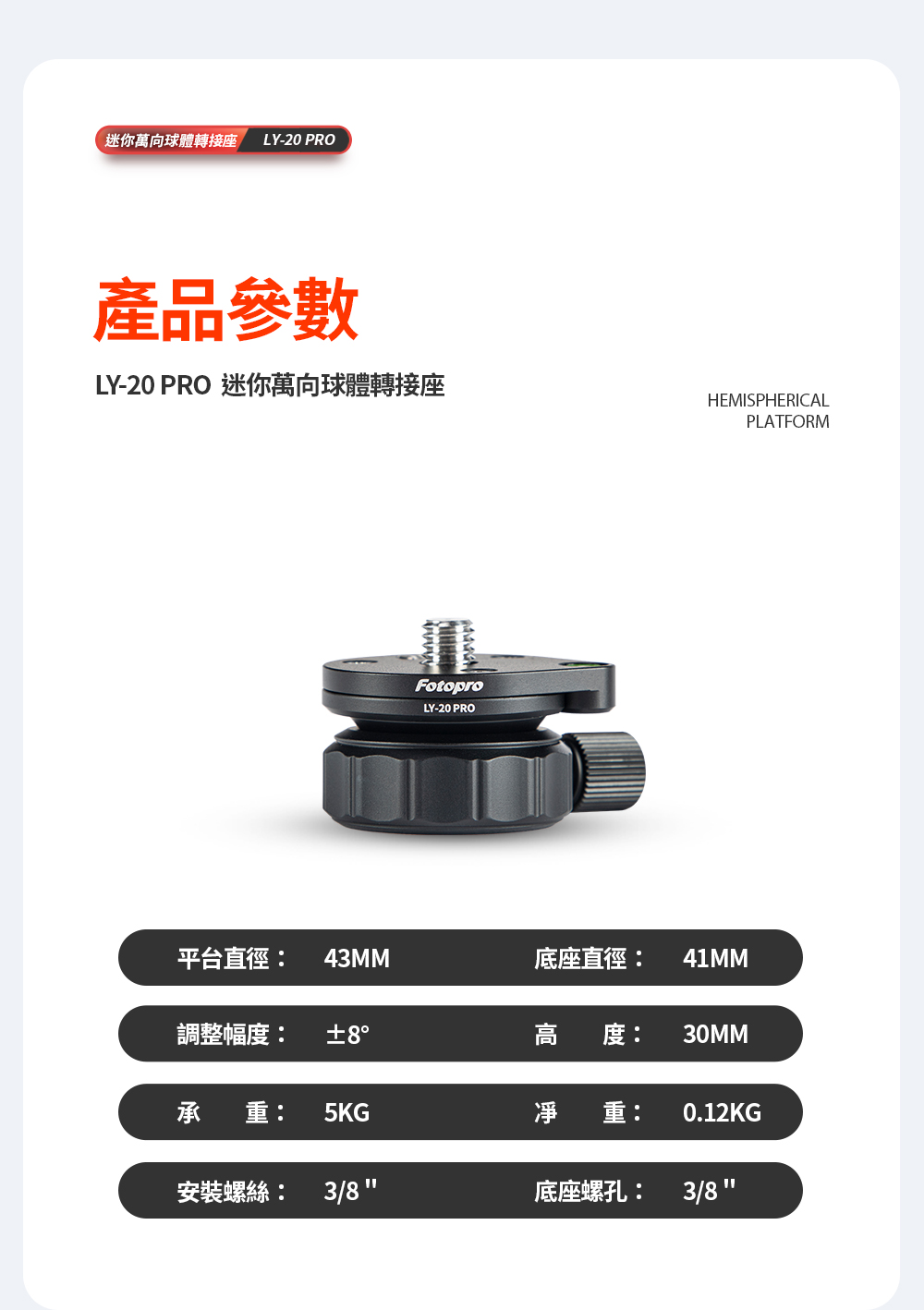 FOTOPRO LY-20 PRO 迷你萬向球體轉接座