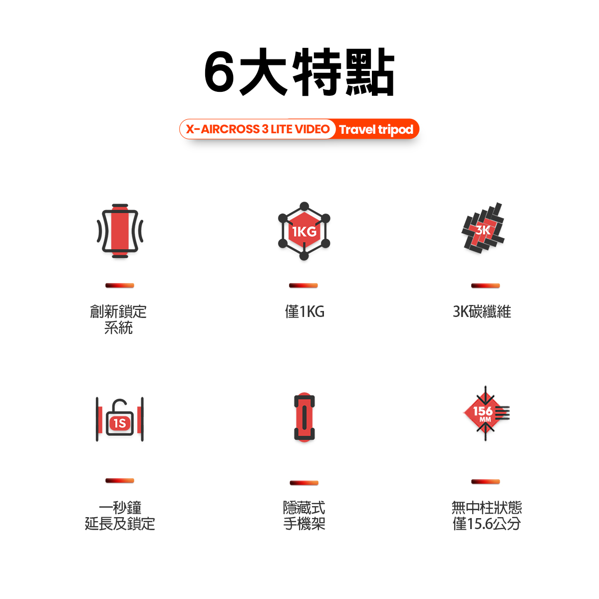 X Aircross 3 LITE VIDEO 專業碳纖龍紋腳架