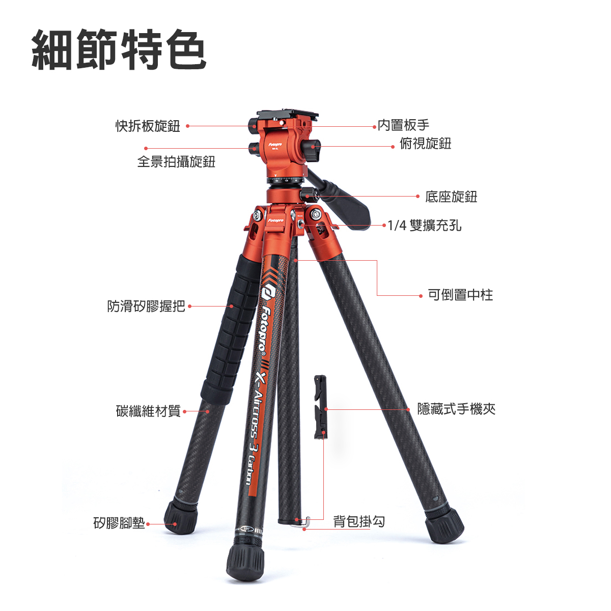 FOTOPRO X Aircross 3 LITE VIDEO 專業碳纖龍紋腳架