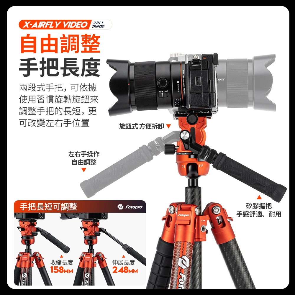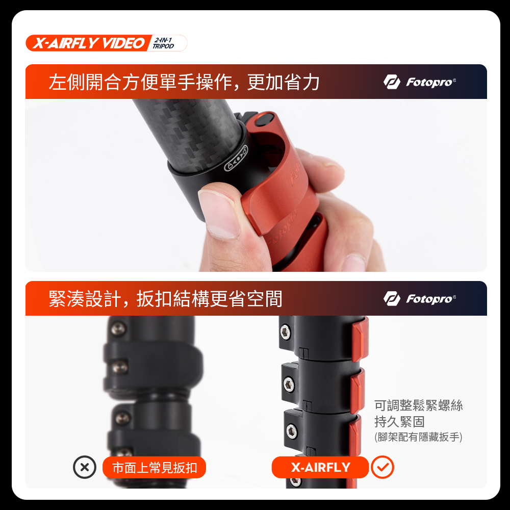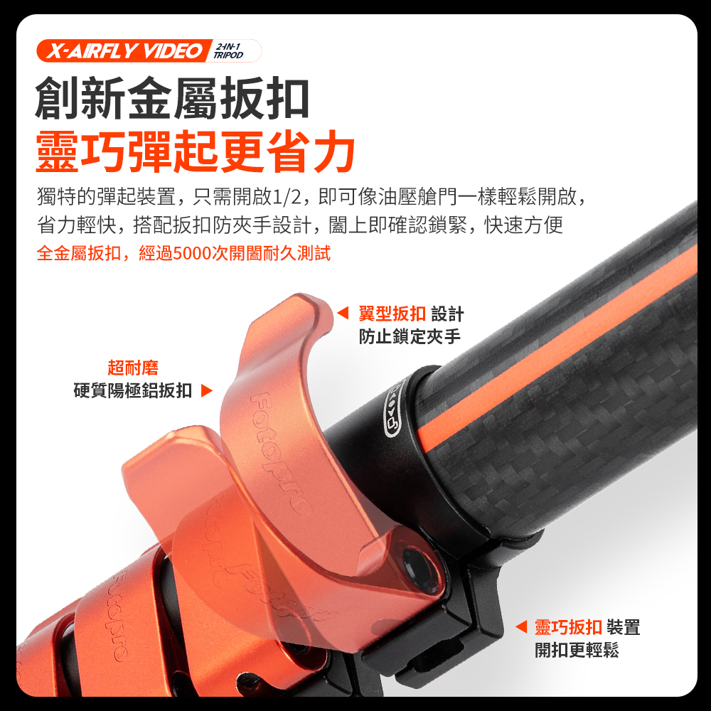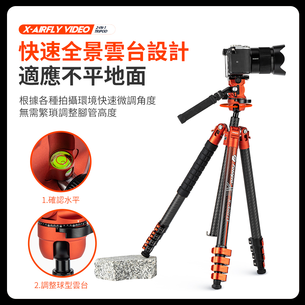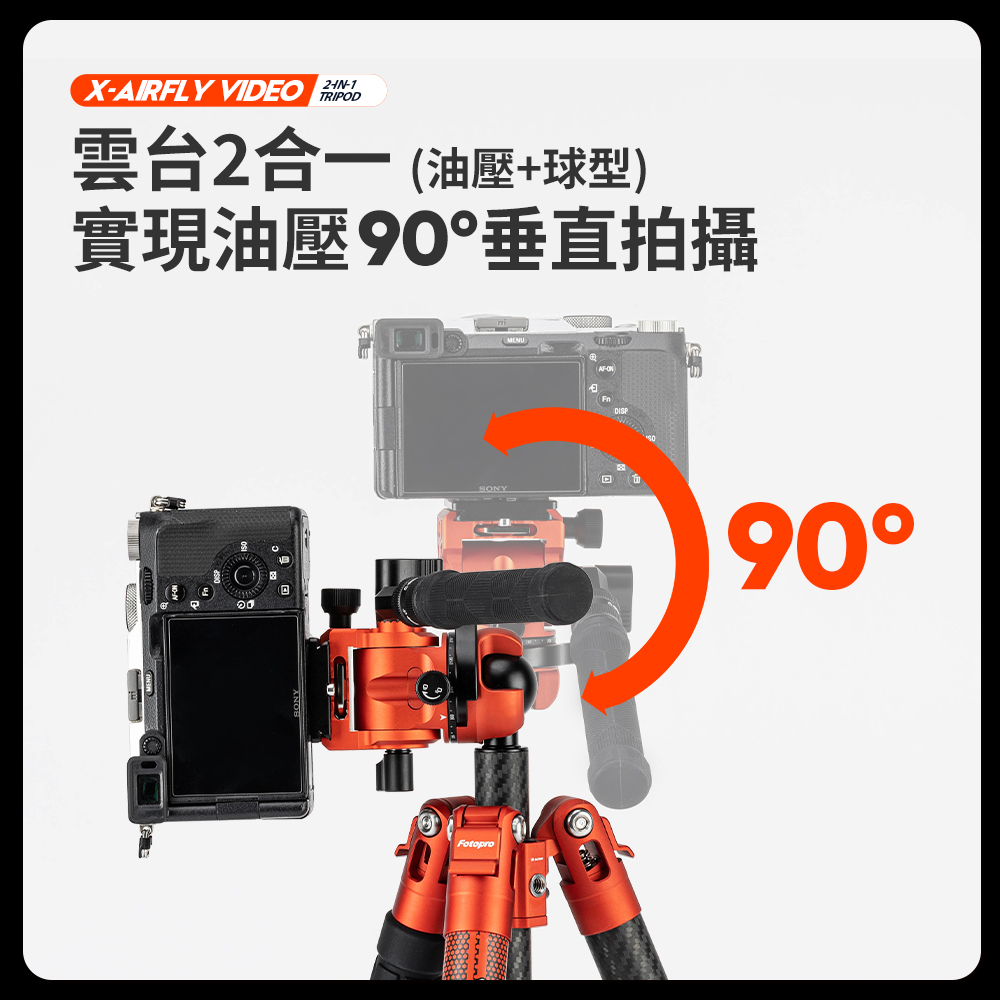 FOTOPRO X-AIRFly VIDEO 油壓雲台輕巧扳扣式碳纖三腳架