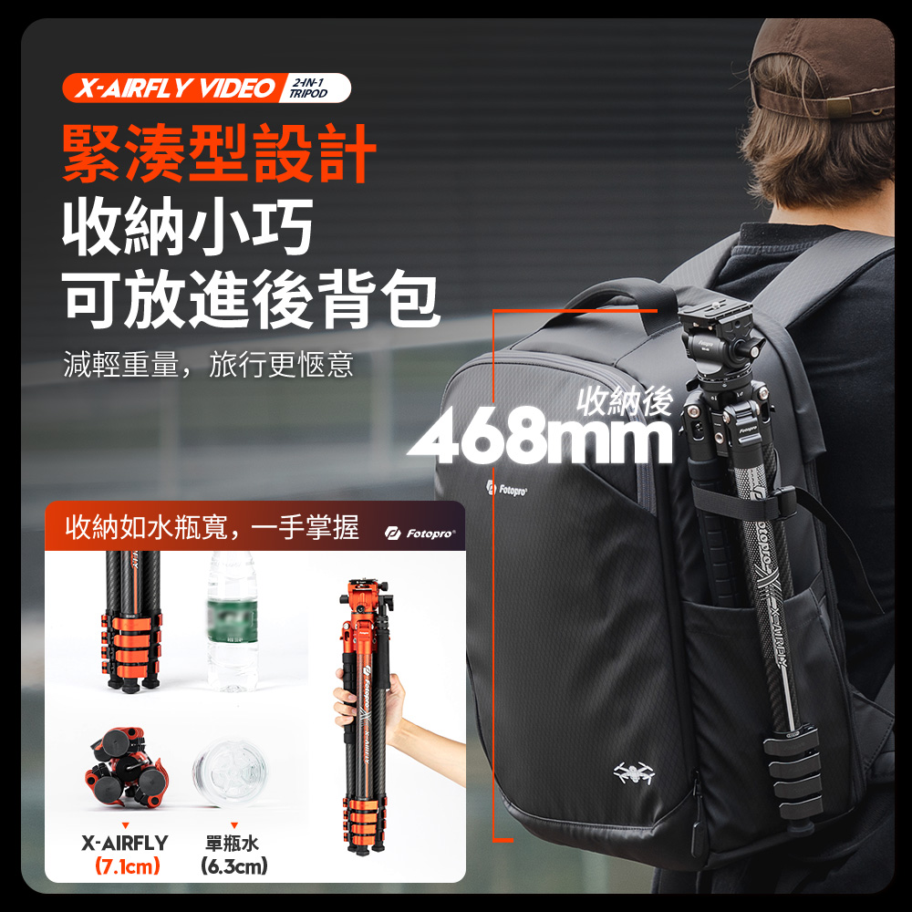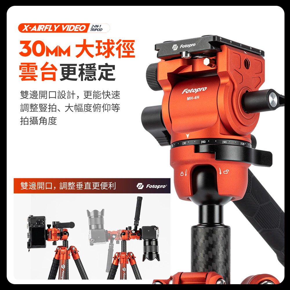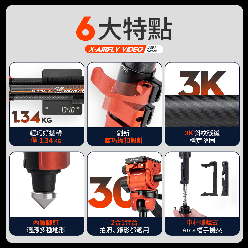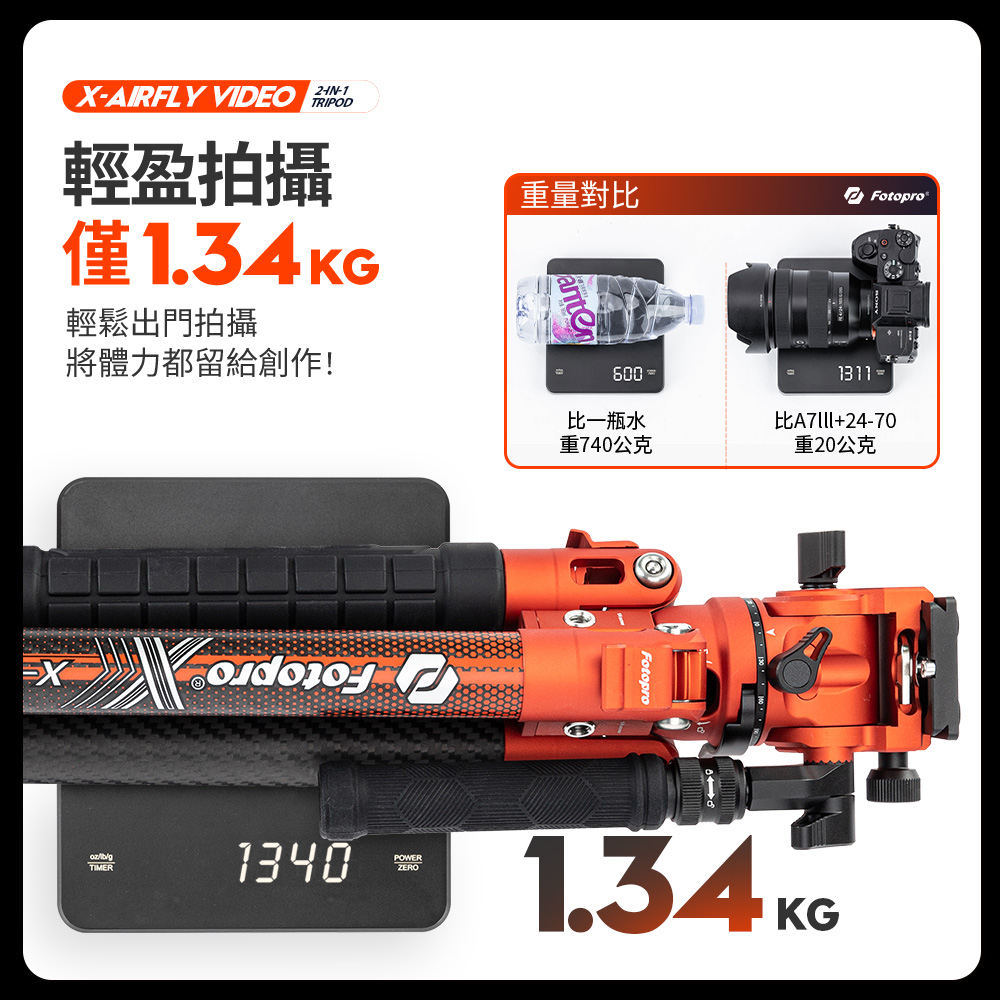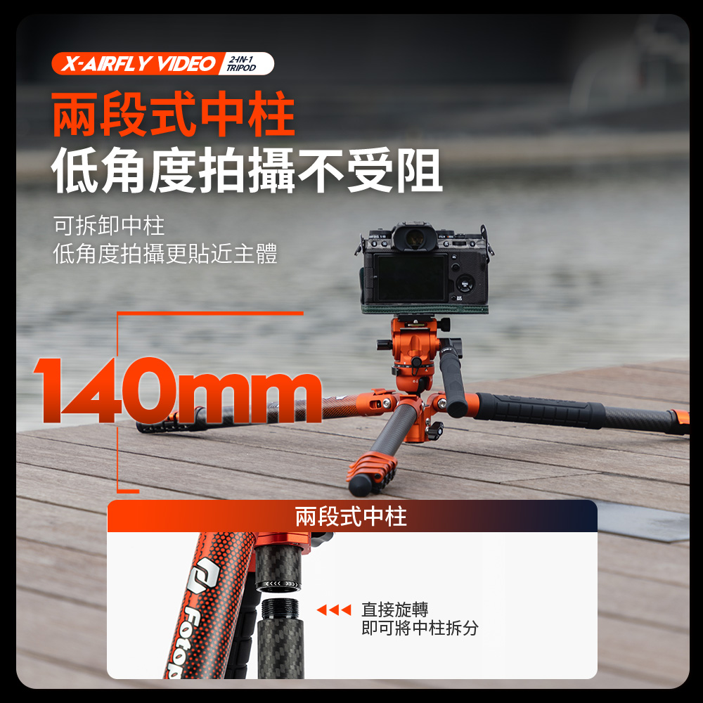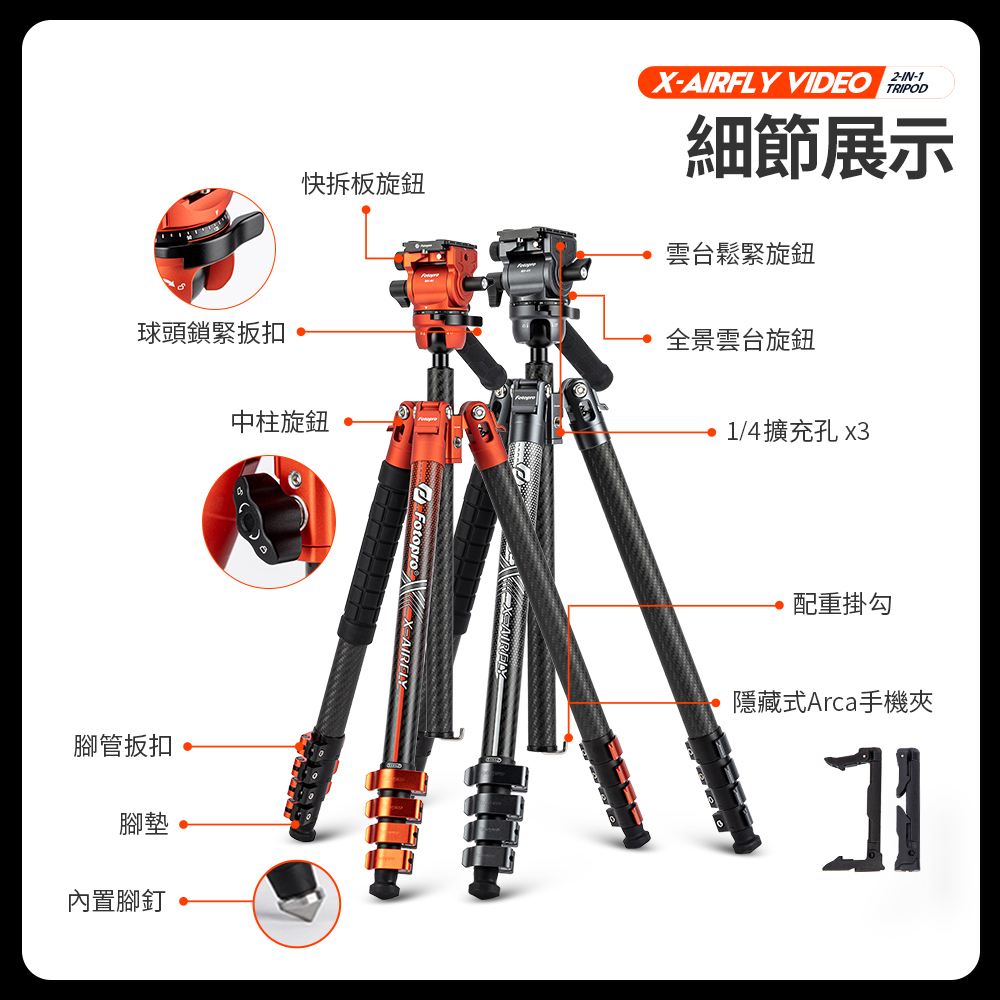 FOTOPRO X-AIRFly VIDEO 油壓雲台輕巧扳扣式碳纖三腳架