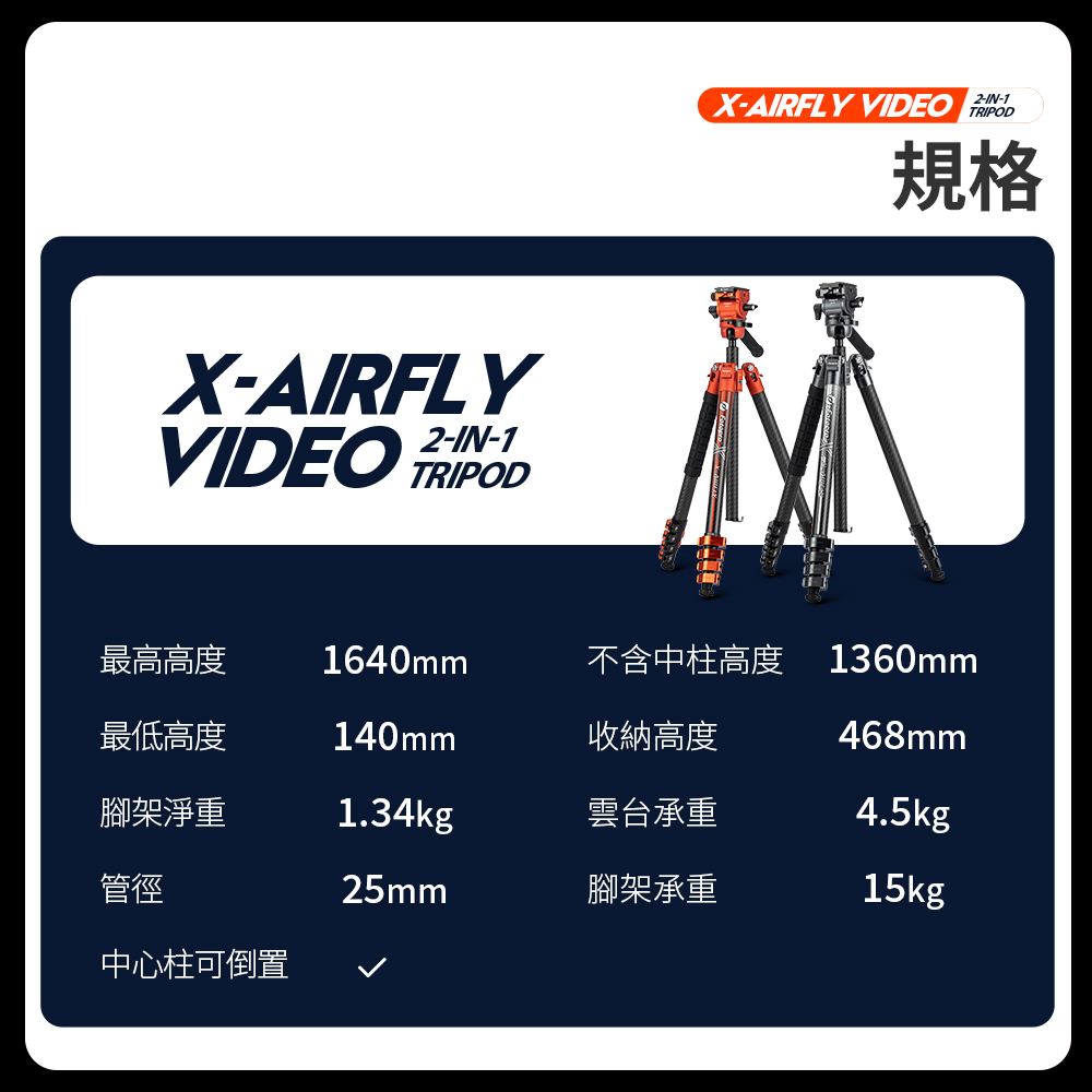 X-AIRFly VIDEO 油壓雲台輕巧扳扣式碳纖三腳架