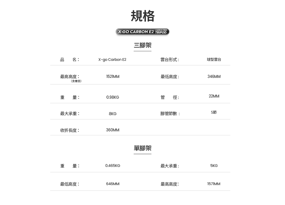 X-GO Carbon E2 碳纖三腳架