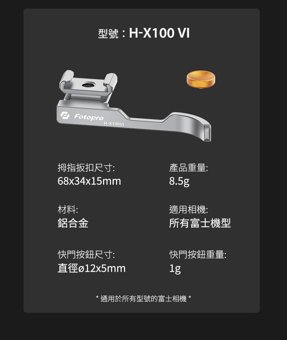 FOTOPRO QAL-100VI 富士 FUJIFILM X100V X100VI 相機專用手柄
