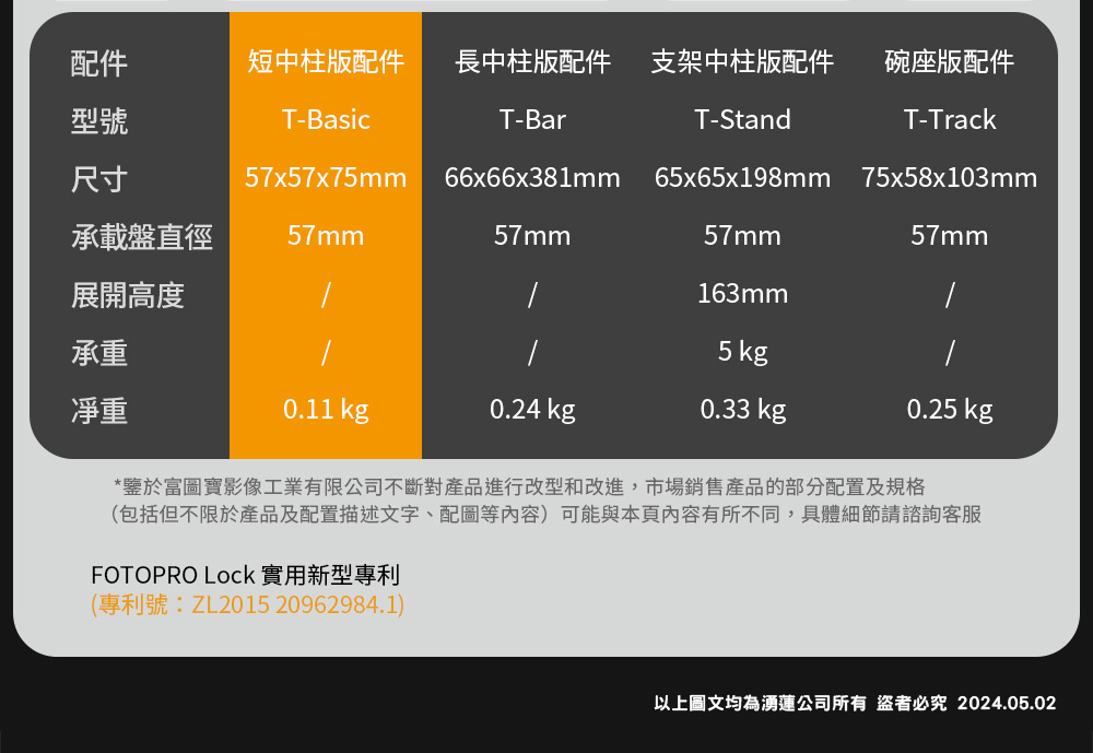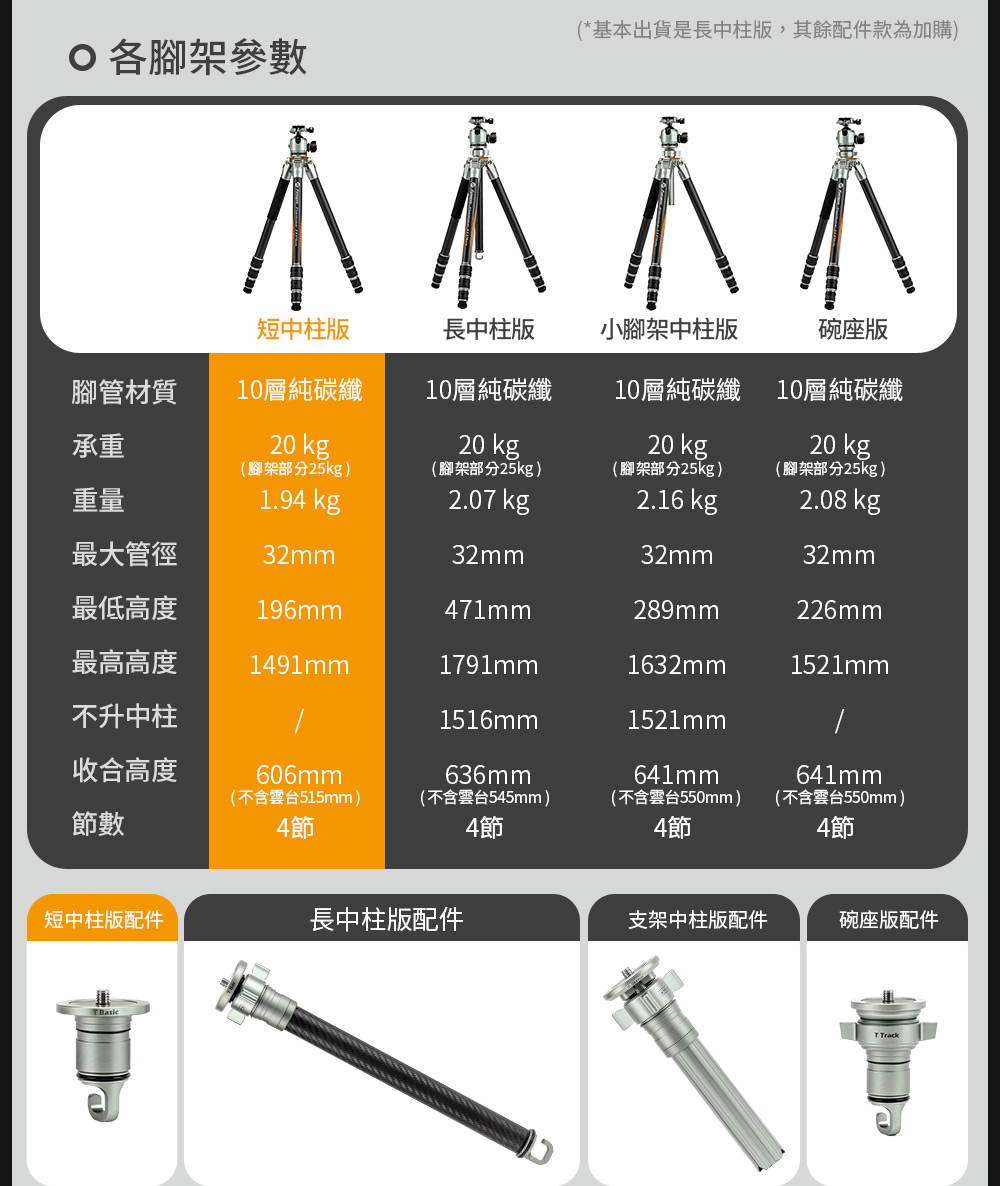 T1-plus 盤圖腳架 <短中柱版配件> T-basic