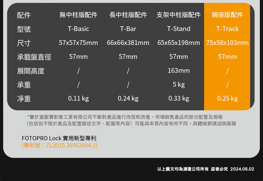 T1-plus 盤圖腳架 <碗座版配件> T-track