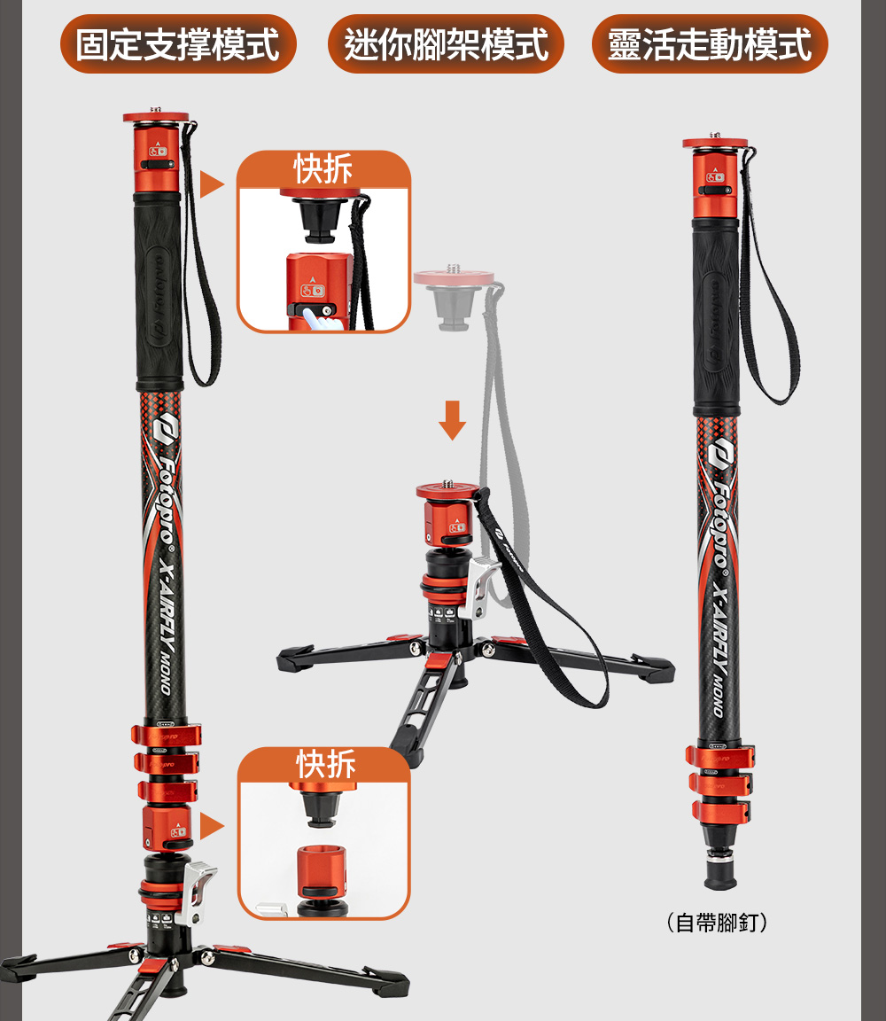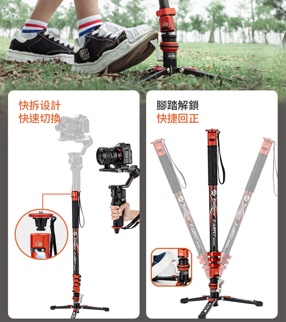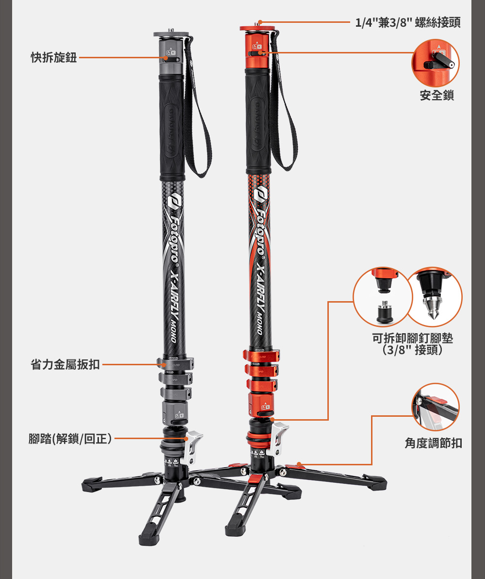 X-AIRFLY Mono 專業碳纖單腳架【腳踏款】