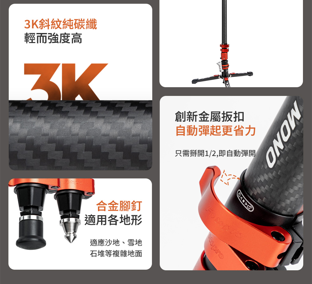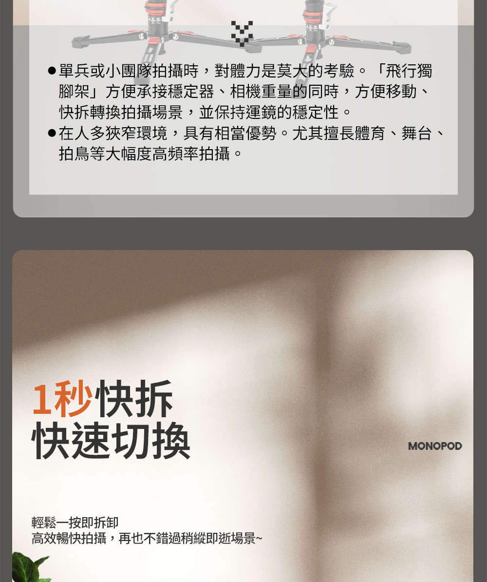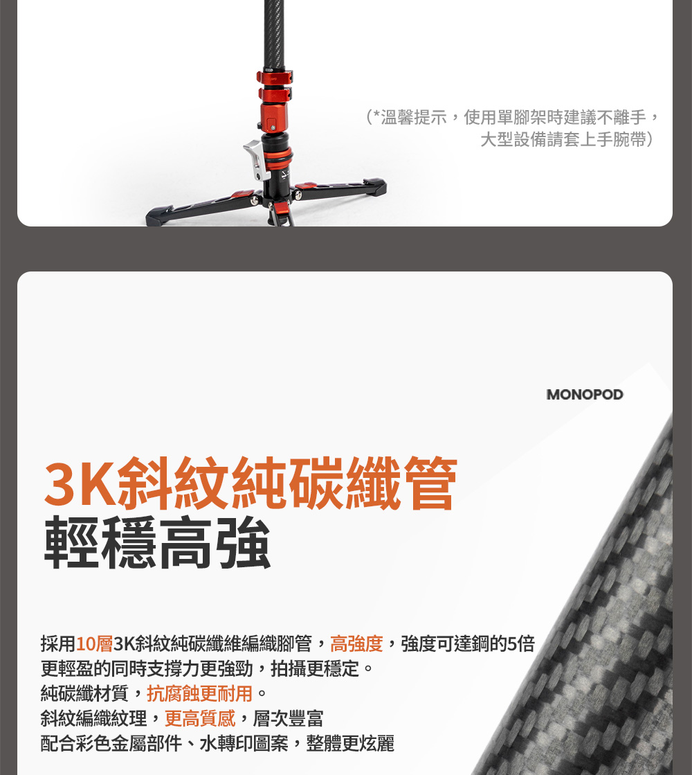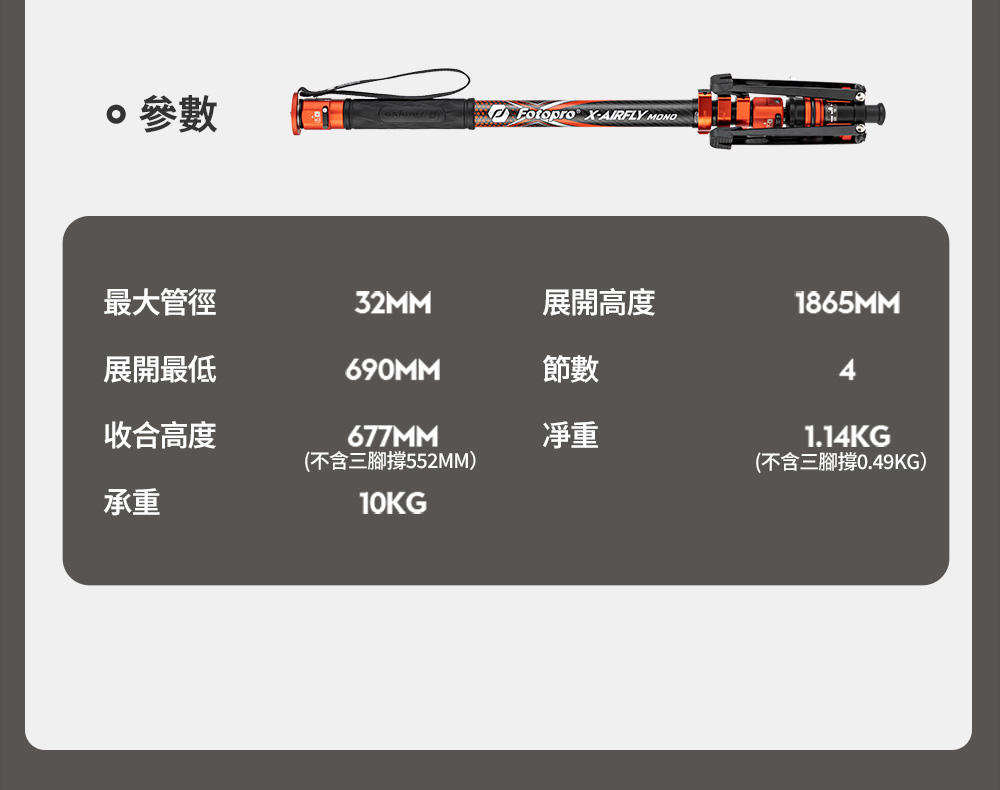X-AIRFLY Mono 專業碳纖單腳架【腳踏款】