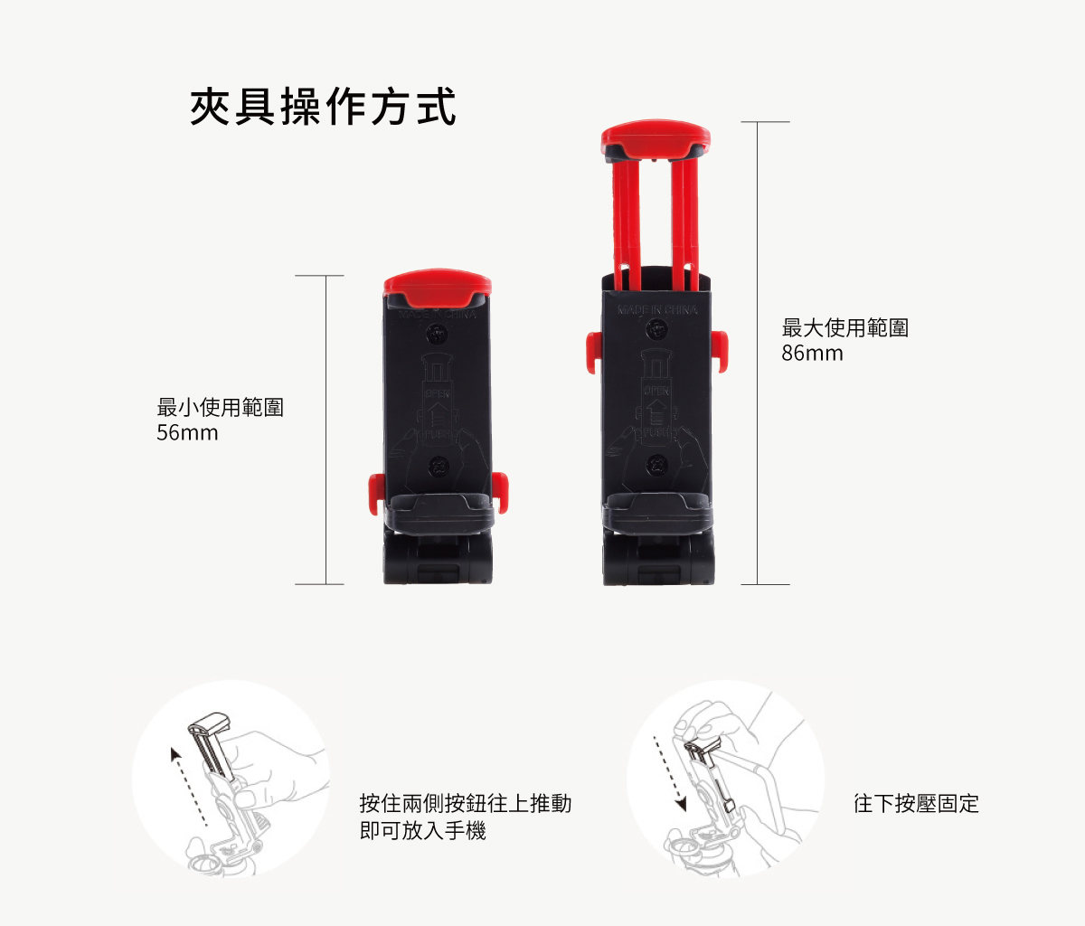 最小使用範圍56mm / 最大使用範圍86mm