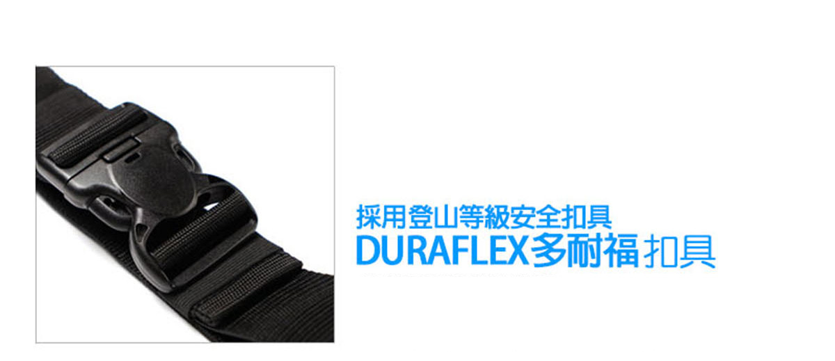 美國Duraflex多耐福頂級扣具為世界知名登山器材、背包、裝備之塑膠配件品牌先驅者,美國軍事設備也廣泛使用Duraflex商品做為安全扣具