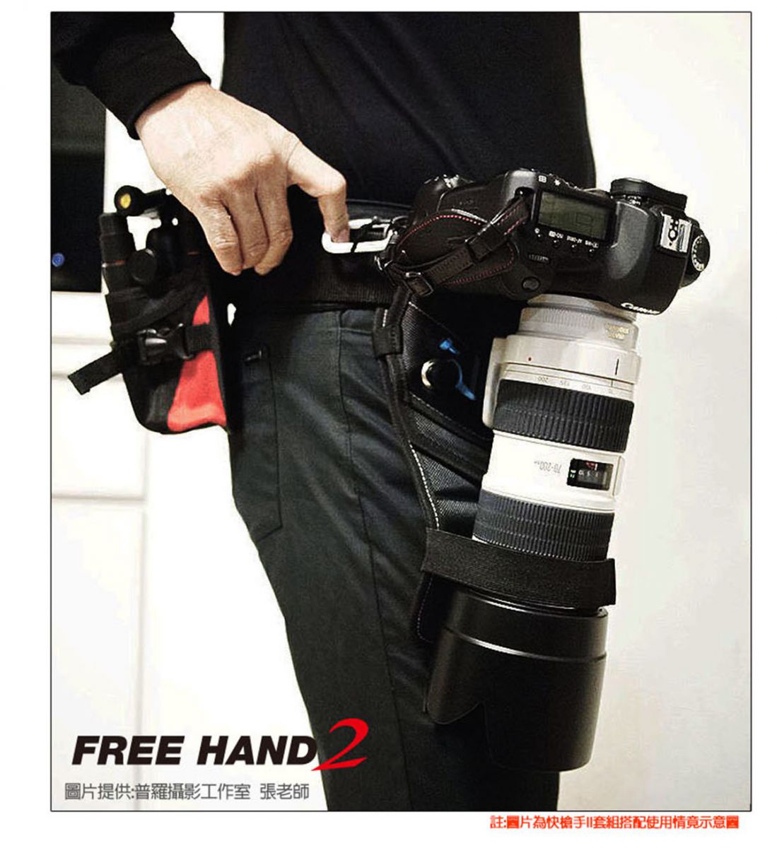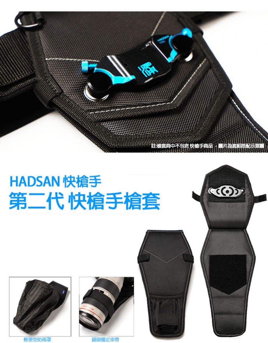 為方便戶外攜帶使用在減壓槍套襯墊背面增加了輕便型防雨罩收納空間 ,HADSAN快槍手輕便型防雨罩可容納24-70、70-200這類的大小鏡頭