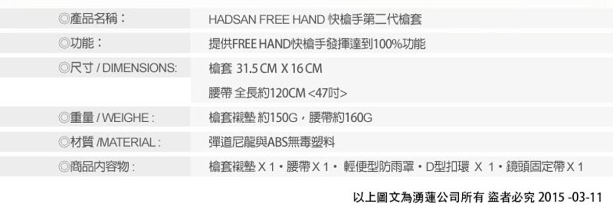 註:新版快槍手II-槍套內附輕便型防雨罩