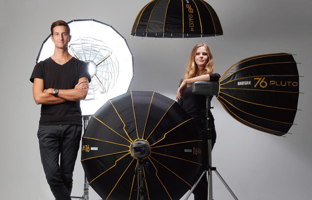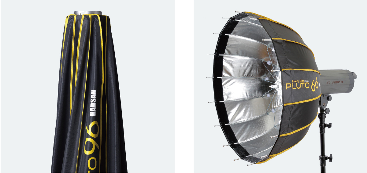 漢森(HADSAN) PLUTO系列是2017年第一季所推出的專利深型快收無影罩, 並聘請台灣十大設計師Andy Chen擔綱 PLUTO產品設計及配色讓產品賦予更高性價比。漢森深型快收柔光箱以特殊角度設計讓光在罩子裡面可以均勻散出,讓專業攝影師可以隨心所欲打出想要的光線。