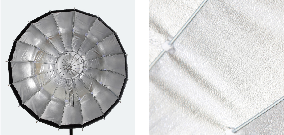 單手開合按鈕:快速收合設計,輕便快速。更深的蛋形設計:讓攝影師更好控制光線範圍,減少光線溢散。