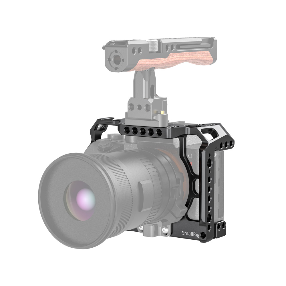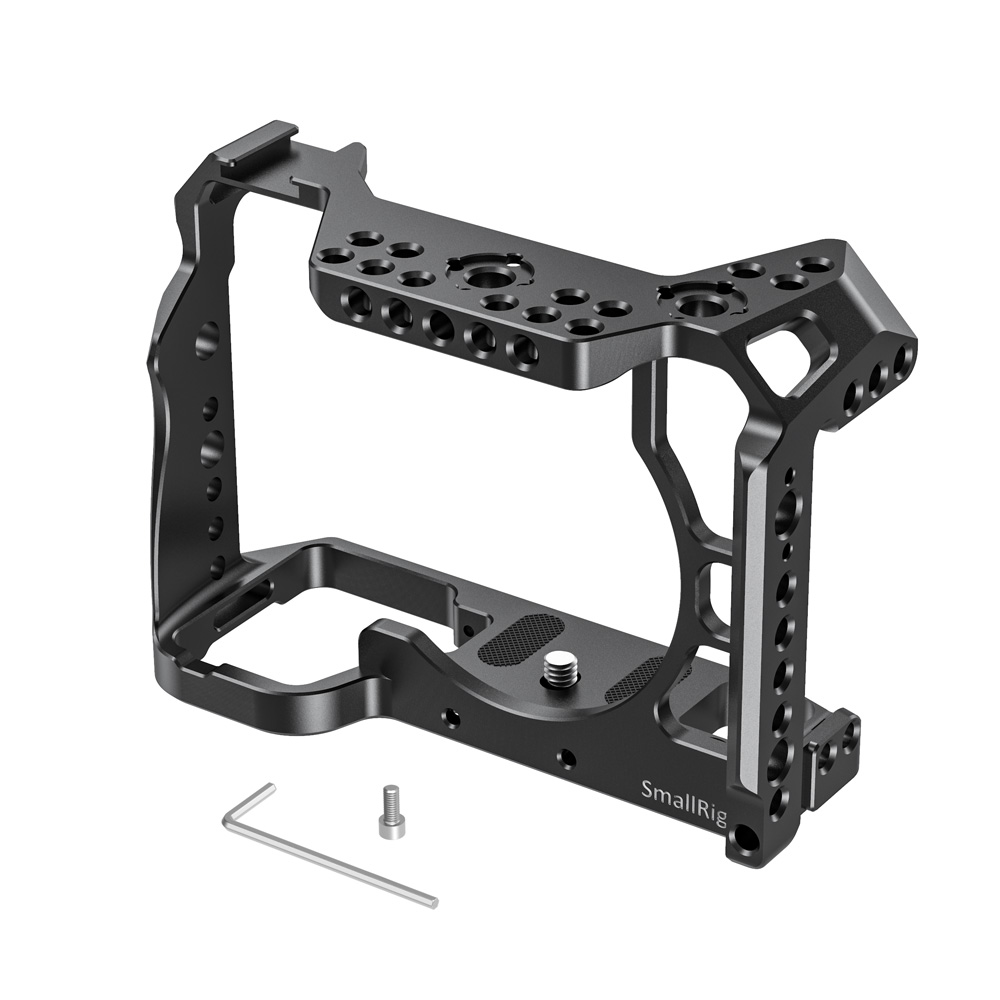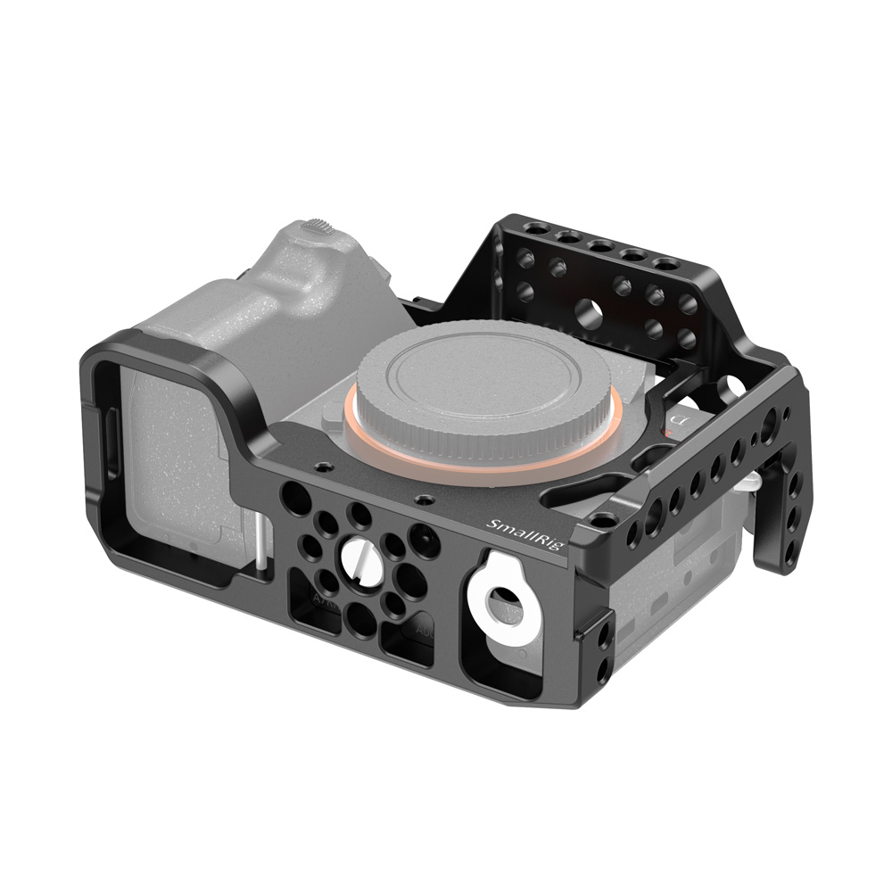 SmallRig SONY A7R IV兔籠 CCS2416專為SONY A7R IV設計,貼合機身。 透過底部1/4螺絲和側面M2.5螺絲固定,穩固不易鬆動。 能配置手腕帶和背帶,且四周有多個1/4、3/8螺紋孔和ARRI定位孔,內置的NATO導軌和冷靴,可自由發揮擴充配件。 例如,可以增加螺紋頂部提把1984、ARRI定位提把2165 或 木製側握把2187等設備,方便進行手持拍攝,側邊還可加裝HDMI線夾1679 保護HDMI線和接口。還具加裝手腕帶和背帶。底部內置一字板手,方便拆裝相機,不易遺失。兔籠符合機身,不影響相機按鍵、電池倉和熱靴等使用。