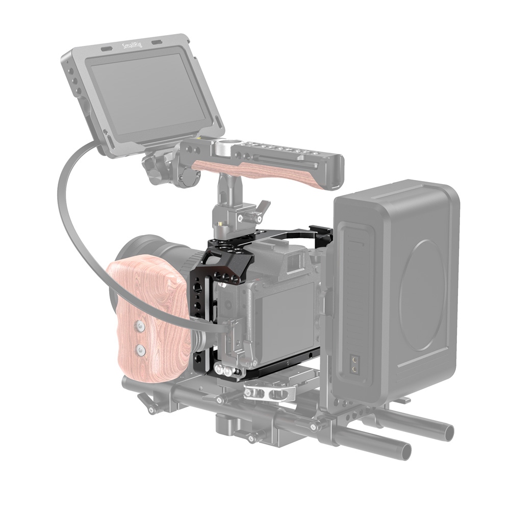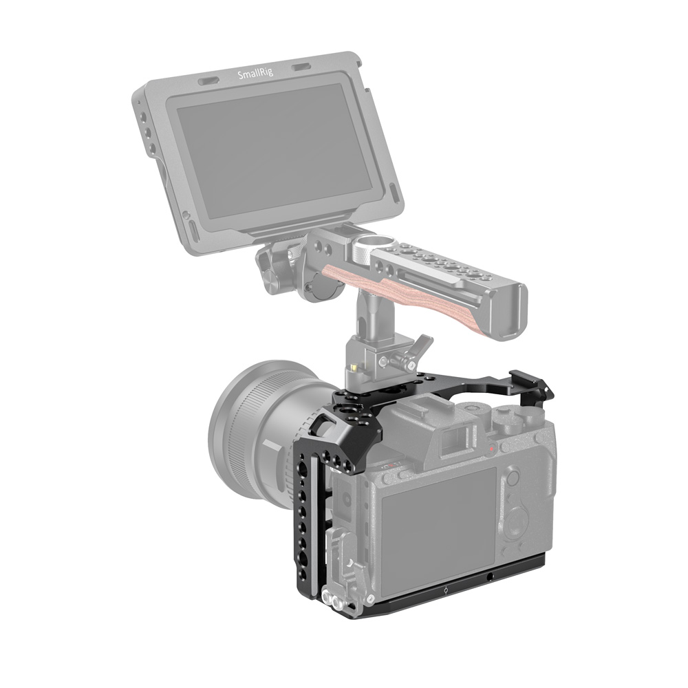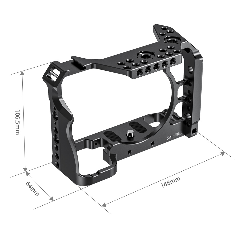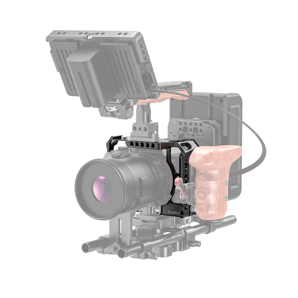 SmallRig SONY A7R IV兔籠 CCS2416專為SONY A7R IV設計,貼合機身。 透過底部1/4螺絲和側面M2.5螺絲固定,穩固不易鬆動。 能配置手腕帶和背帶,且四周有多個1/4、3/8螺紋孔和ARRI定位孔,內置的NATO導軌和冷靴,可自由發揮擴充配件。 例如,可以增加螺紋頂部提把1984、ARRI定位提把2165 或 木製側握把2187等設備,方便進行手持拍攝,側邊還可加裝HDMI線夾1679 保護HDMI線和接口。還具加裝手腕帶和背帶。底部內置一字板手,方便拆裝相機,不易遺失。兔籠符合機身,不影響相機按鍵、電池倉和熱靴等使用。