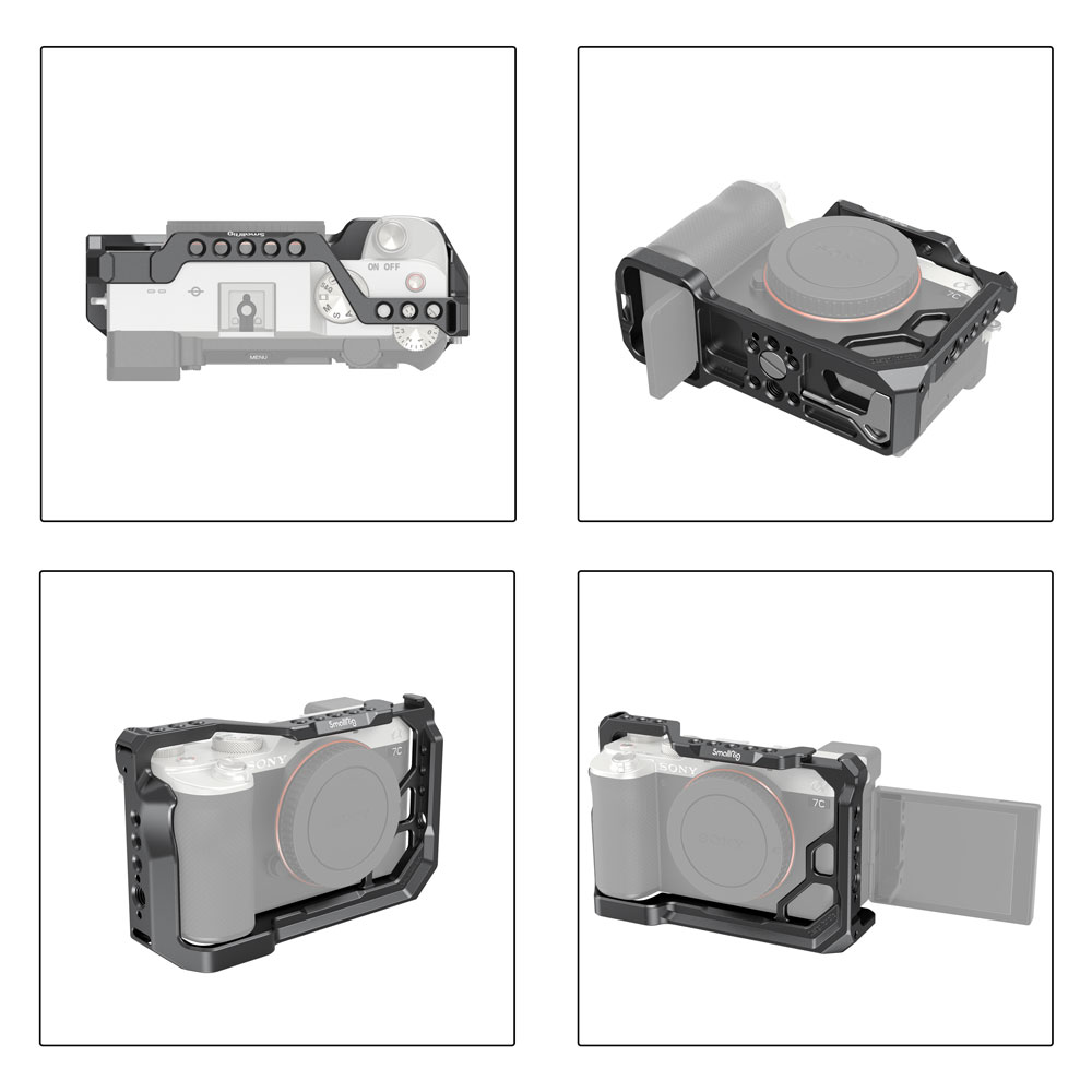 兔籠專為Sony A7C設計,貼合機身。輕巧方便。兔籠能夠自由擴充配件,擁有多個1/4、3/8、ARRI螺紋孔和冷靴座,可隨心所欲增減配備。內置的Arca-Swiss快拆板,使兔籠可安裝於三腳架上,能夠手持和腳架拍攝間交替使用,拍攝過程更加便利。主要透過底部的1/4螺絲和右側M2.5螺絲固定機身,防止意外鬆脫。輕巧且符合人體工學設計,握持更舒適。