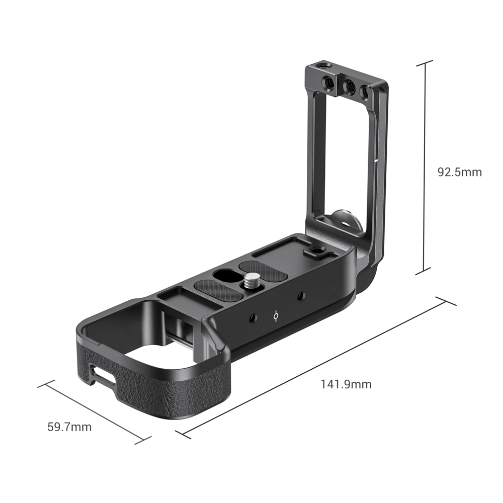 專為Sony A7RIII,A7III和A9相機設計。底板和側板均為Arca-Swiss標準。可直接安裝於相容的腳架上,並延伸20mm的高度,以提供更舒適的握持感。側板可根據需求拆除和滑動。可以將手腕帶和Metabones適配器支架1764之類的配件連接到其上,加強穩定性。