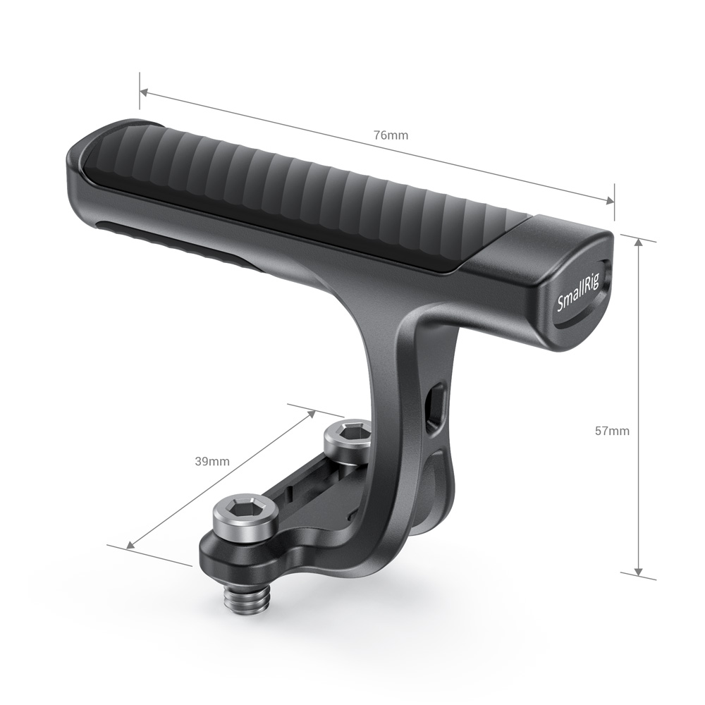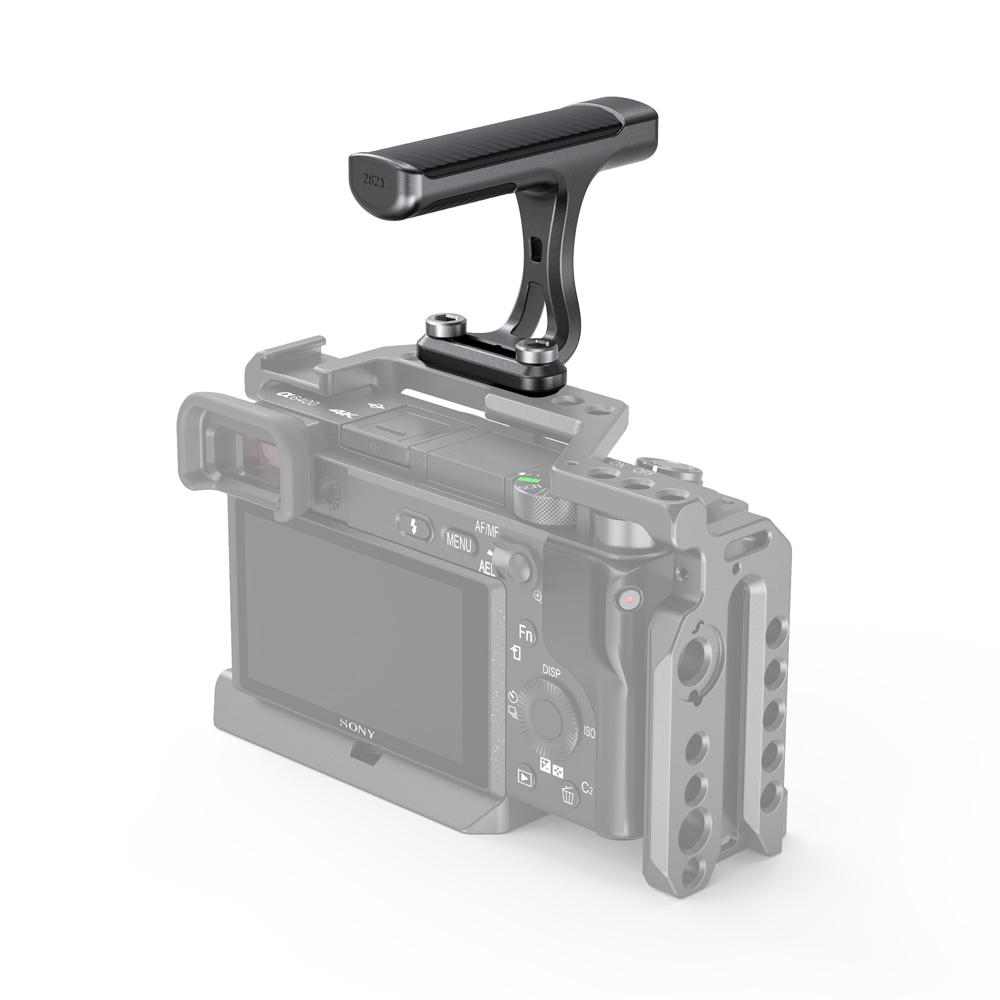 適用於輕型相機的SmallRig迷你頂部手柄 2821符合人體工程學,擁有舒適的握持感。採用鋁合金製成,握把表面有防滑矽膠墊片,重量僅59g,輕巧便攜。透過兩顆1/4螺絲固定於兔籠上,適合微單、卡片相機等輕型相機,緊湊的手提設計,方便收納,很適合日常拍攝使用。