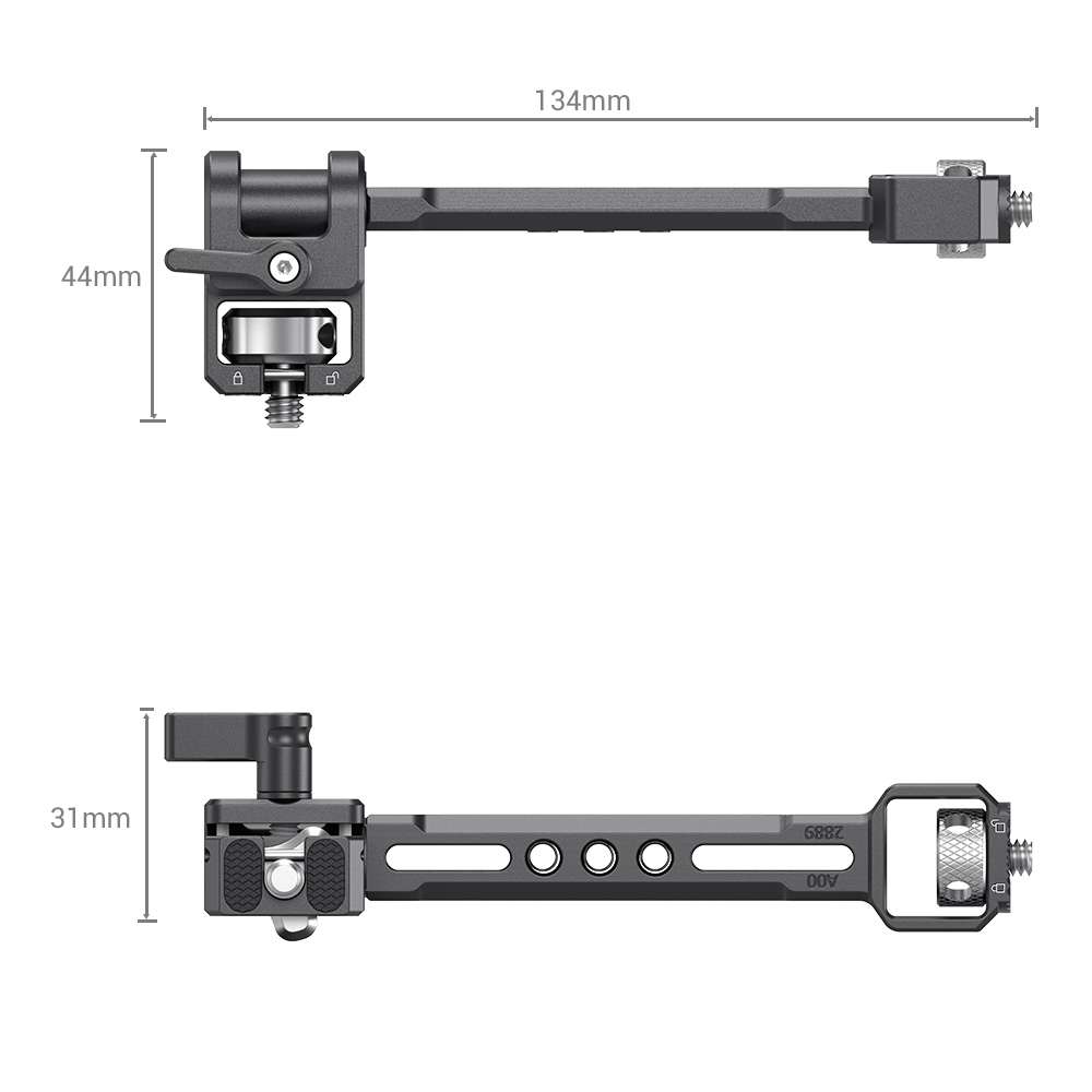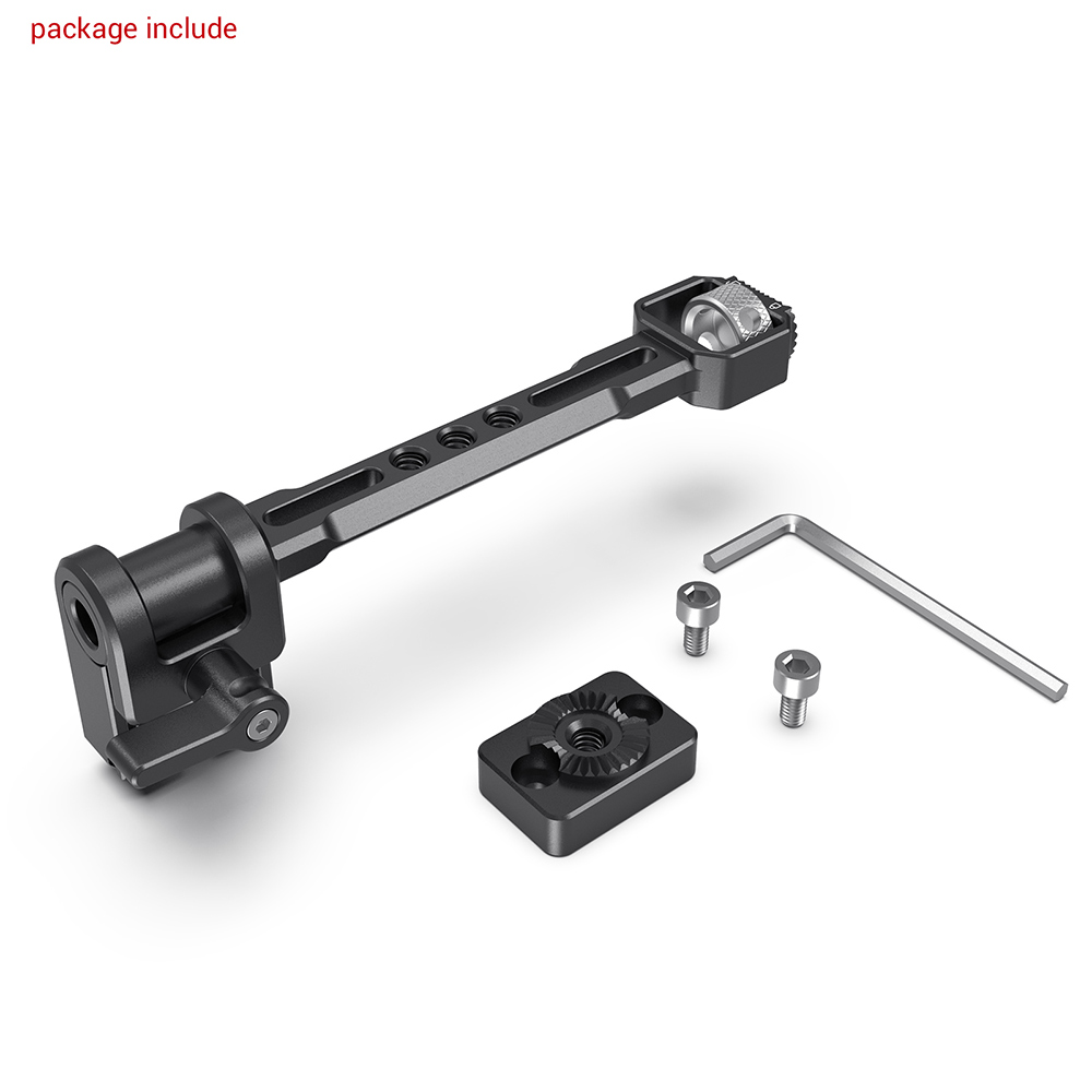 適用於DJI RONIN-S / RONIN-SC和ZHIYUN CRANE 3 / CRANE 3S / WEEBILL-S和MOZA的SmallRig可調式顯示器支架,可將顯示器或配件固定在雲台上。透過支架內置螺絲固定於ZHIYUN CRANE 3,CRANE 3S,WEEBILL-S或WEEBILL LAB的螺紋孔上,並且隨附一個齒輪轉接板,用於將支架連接到DJI Ronin-S / SC 兩個M4螺絲上。具有三個1/4螺紋孔,可擴充其他配件,例如麥克風或聲音接收器Cold Shoe 1241。顯示器支架可360°調節,可固定最大2.2磅的顯示器。支架上帶有橡膠墊,可防止顯示器刮傷。每個螺絲都有六角扳手的插槽,可用扳手加固,不怕鬆動。