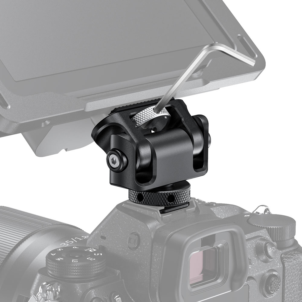 可透過冷靴座將顯示器固定在相機或其他配件的頂部。支架可前後調節185°,可自由固定於任何角度。透過兩側螺絲調整鬆緊度。採用鋁合金製成,堅固耐用,可以承重1.2kg。支架的頂部覆蓋橡膠墊,用以保護顯示器避免刮傷。每個螺絲都有六角插槽,可使用六角扳手加強固定,避免相機意外脫落。底部有一1/4螺紋孔,能擴充其他配件。