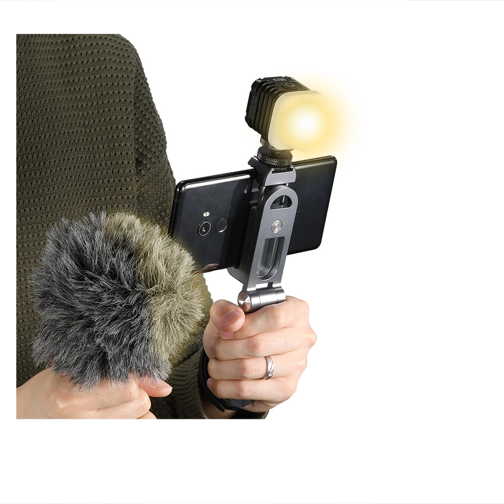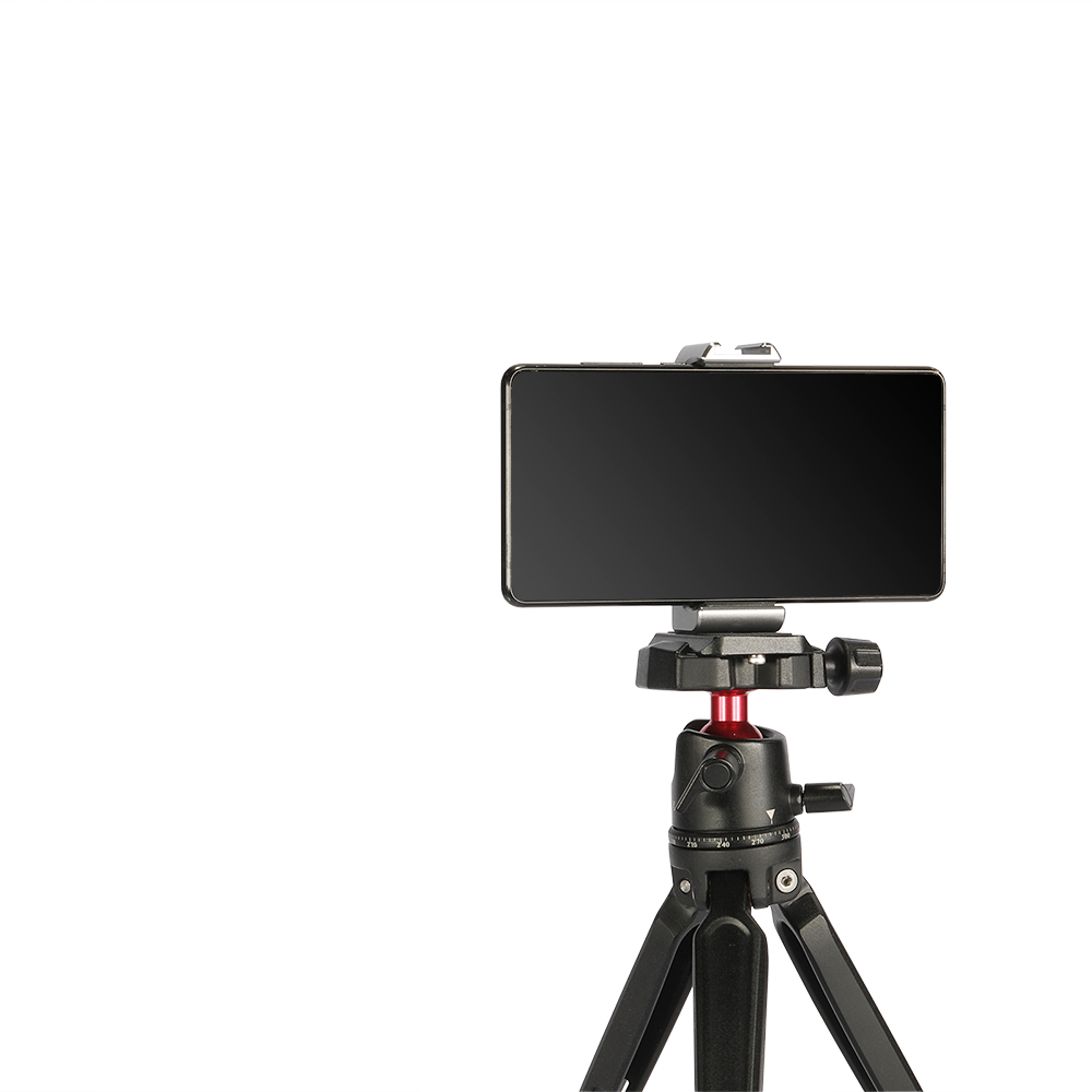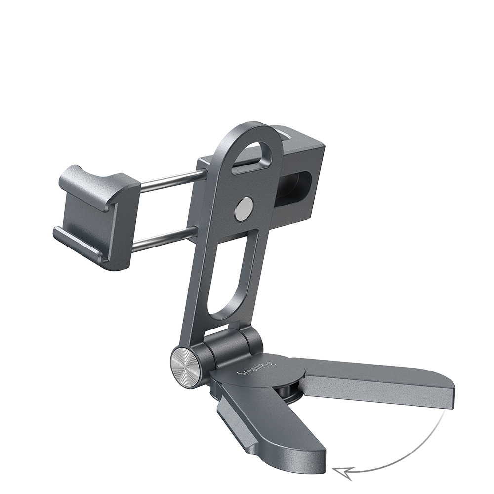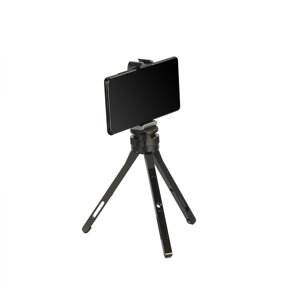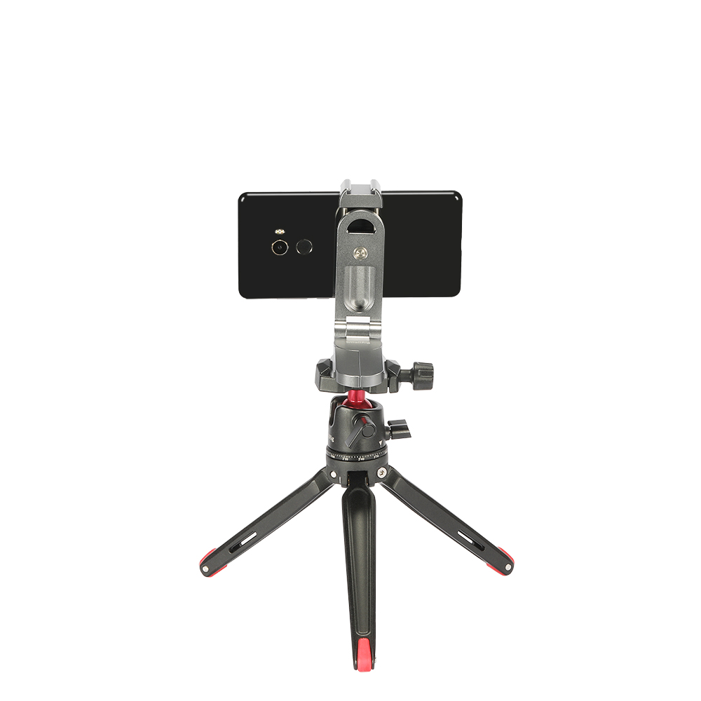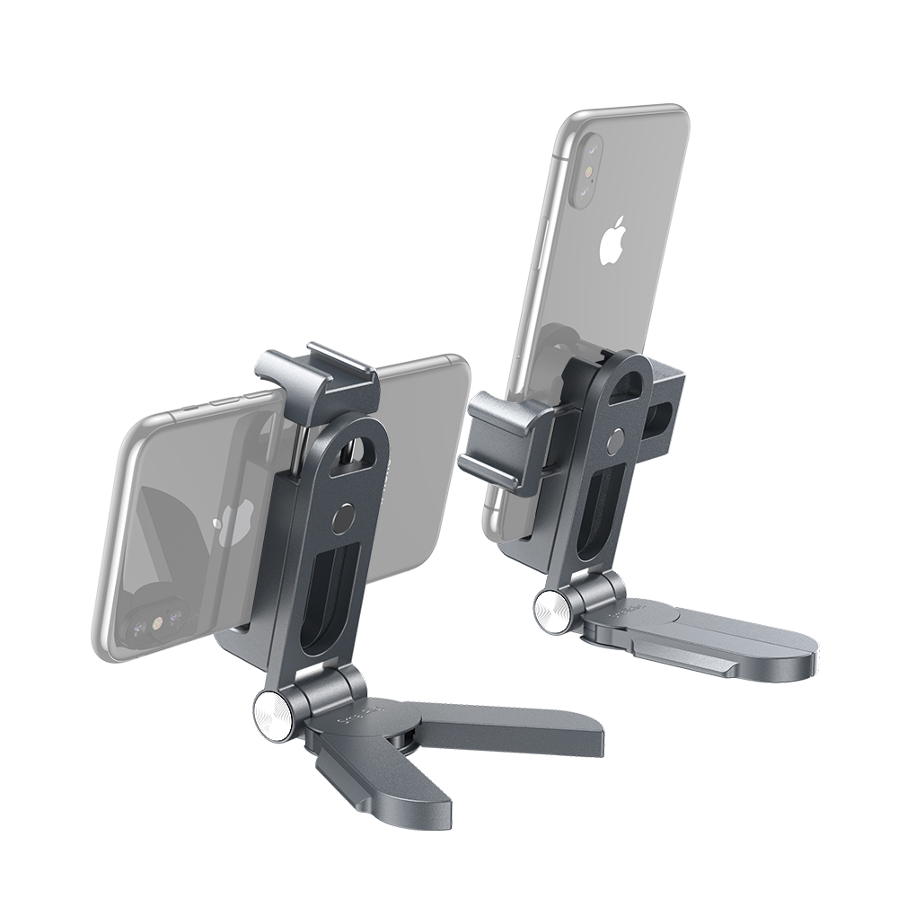 手機支架與大多數市面上智慧型手機相容,寬度範圍為5.5cm - 9cm。採用彈簧調節,能快速的拆裝手機。支架帶有一個冷靴和一個1/4螺紋孔,可自由擴充配件。擁有Arca-Swiss相容的底板可以連接Arca規格的三腳架,也可以當手持拍攝的手把。底座可向兩側打開,立於桌面當作支撐架使用。手機支架可360度調節,底座可270度調節,支架可摺疊收納,方便攜帶。內置的橡膠墊片能防止手機刮傷。