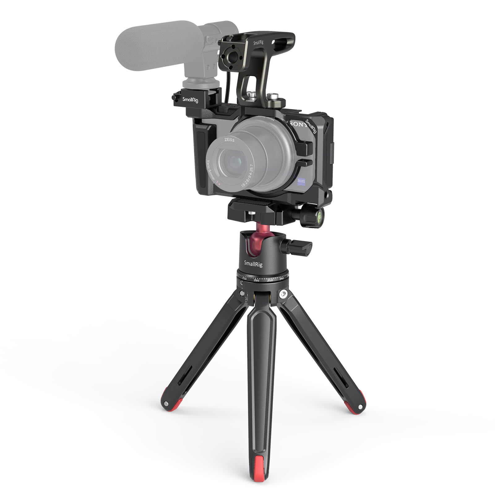 套組內含有適用於Sony ZV1相機SmallRig兔籠 - 2938、輕型相機用的SmallRig迷你頂部手提(1/4螺絲)- HTS2756、具全景球頭的SmallRig迷你三腳架 - BUT2664、防脫落鈕結構的SmallRig冷靴座支架 - 2260。