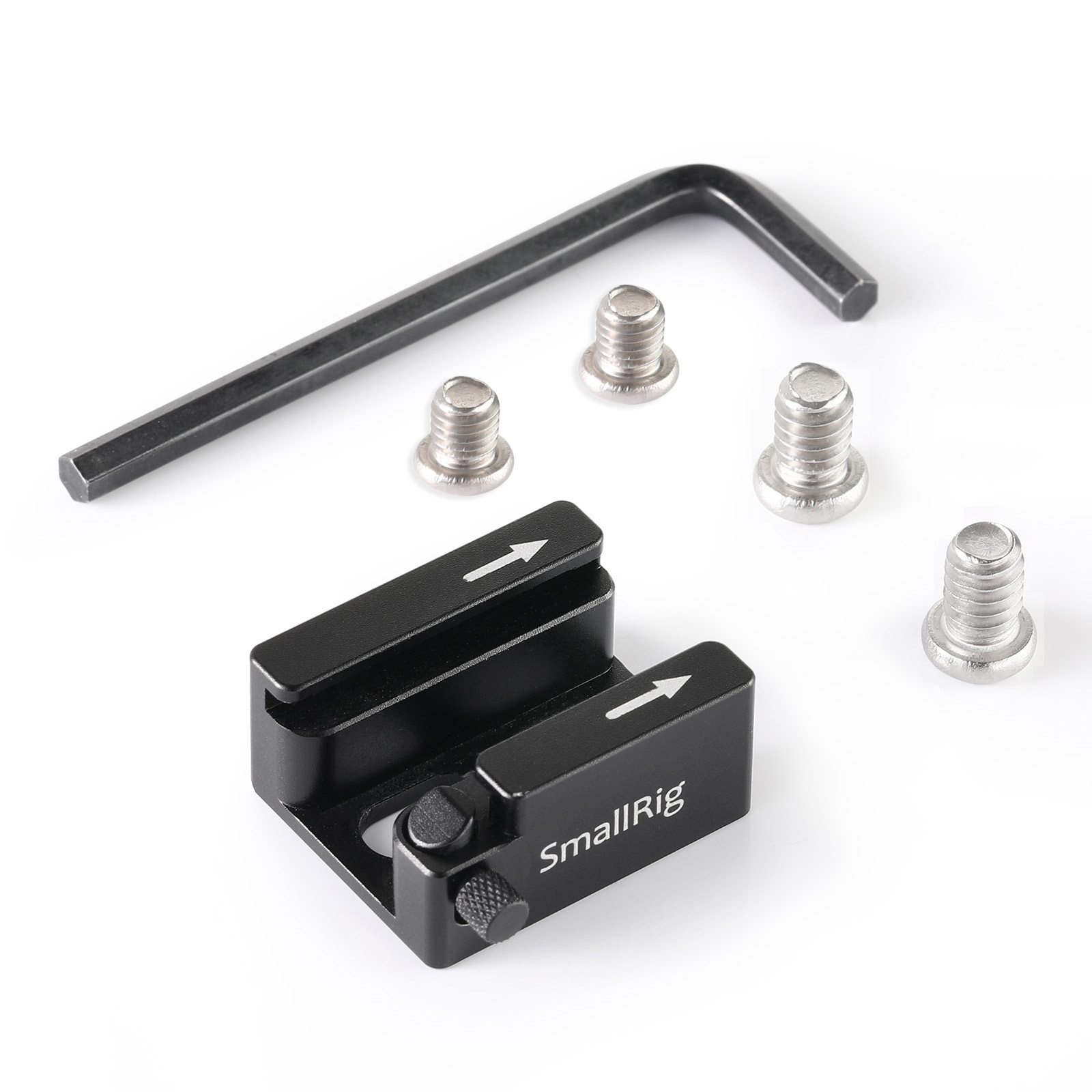 是為了將兩個1/4螺紋孔轉接成冷靴,來安裝冷靴配件而設計,可加裝如閃光燈、麥克風等。冷靴透過兩個1/4螺絲可連接兔籠、頂板、握柄,防止鬆脫。此外,冷靴座具雙側防脫設計,其一端帶有防脫按鈕,以防止脫落,確保設備安全。