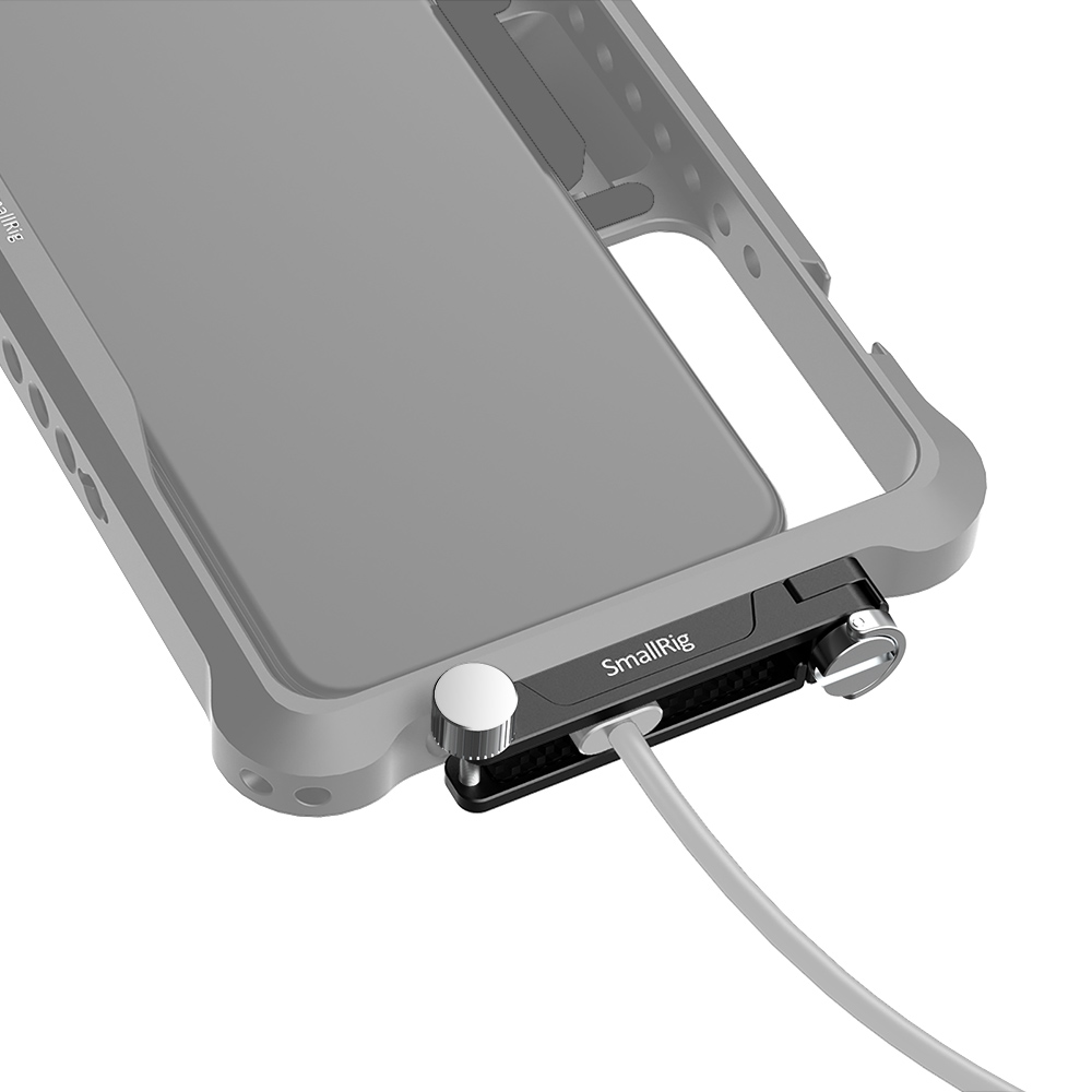為SmallRig標準通用手機籠CPU2391設計,用於將電源線固定在手機上。電纜夾可以通過帶有D形環的1/4螺絲連接到兔籠側面,並使用USB-C電纜,Lightning電纜,翼形螺絲等適配器固定電纜。適合厚度範圍為3mm至8mm的電纜。內部具有軟墊,有助於增加摩擦力,加強鎖定力。