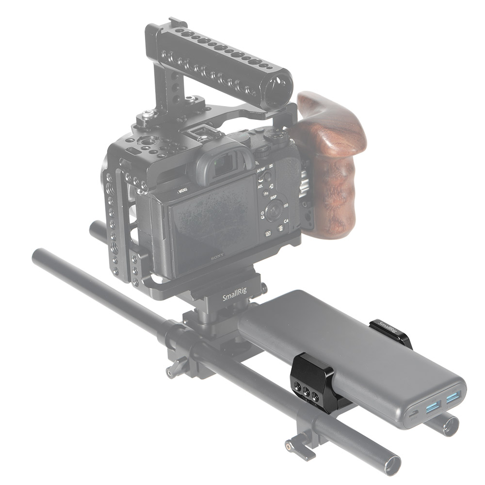 設計用於在需要可持續充電解決方案時,將行動電源連接到相機裝置。支架採用拉伸式彈簧鎖緊,寬度從53mm至87mm,相容於市場上的大多數行動電源產品。支架的頂部,底部和背面有1/4的螺紋孔,方便將支架固定至不同的位置。例如,您可以將其安裝到SmallRig頂部手提1638,SmallRig的正面雙桿夾具942,SmallRig BallHead Arm 2070或SmallRig兔籠。支架內部具有柔軟的保護橡膠墊,可將行動電源牢固地固定在夾具中,並防止刮傷。