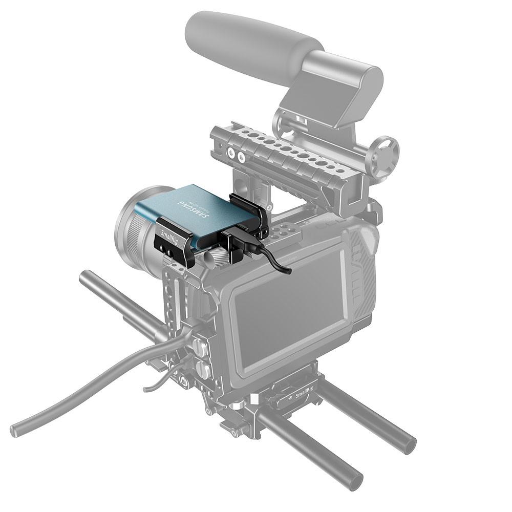 為將SSD安裝在BMPCC 4K / 6K和Z Cam E2等相機所設計。彈簧夾可往兩側拉伸,適合不同尺寸SSD,例如Samsung T5 SSD、Angelbird SSD2go PKT、Glyph Atom SSD、SanDisk 1T SSD、G-Technology G-DRIVE行動SSD等。帶有可拆卸的冷靴,冷靴可以固定於支架的底部或側面,因此可將SSD安裝到冷靴座上。或者將其卸下後,可以使用1/4的螺絲安裝靈活支架。支架內部具有柔軟的保護橡膠墊,可將SSD安全地固定於彈簧夾,並防止刮傷表面。更棒的是,他具有電纜夾,用於固定USB-C電纜線,並通過手轉螺絲加以固定。SSD固定器體積小巧,適用於攝影師和影片拍攝者。
