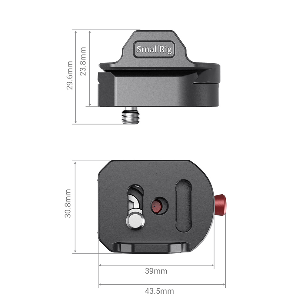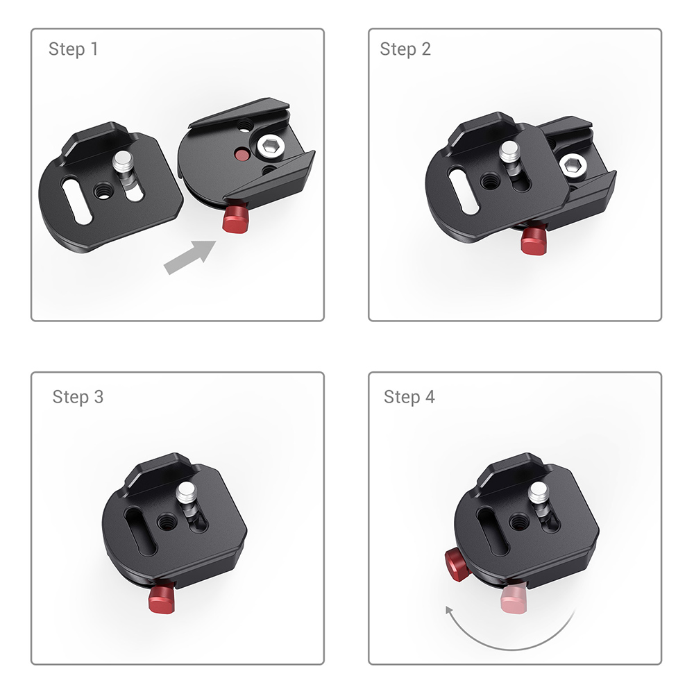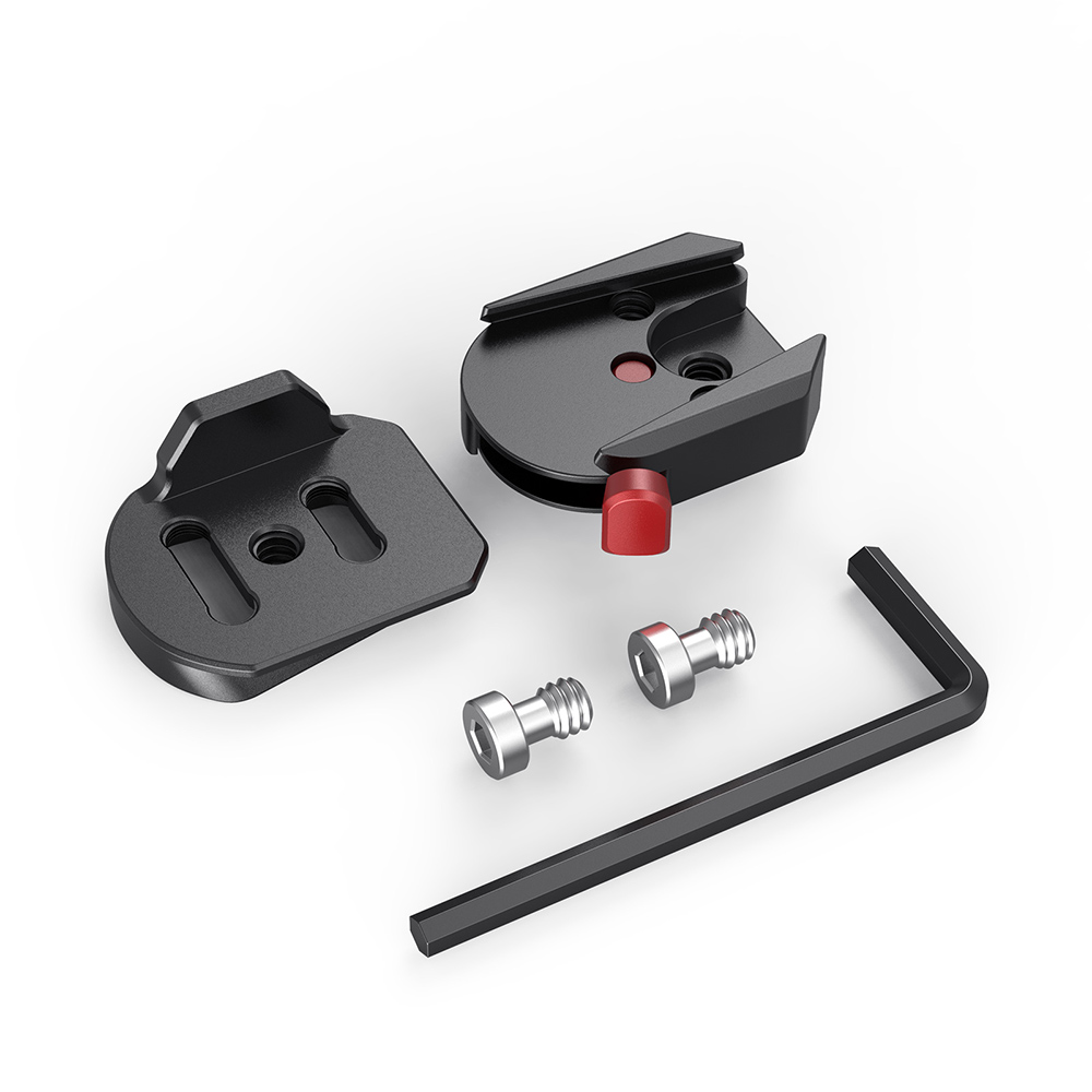 用於無線TX和RX的BSW2482由一塊安裝板和一個快裝夾具組成,使用1/4螺絲鎖定在無線發射器或接收器的底部,安裝板滑入快裝夾內鎖緊,可確保將無線發射器/接收器快速安裝至相機。該夾具還具有多個1/4螺紋孔,便於轉接魔術手等配件。