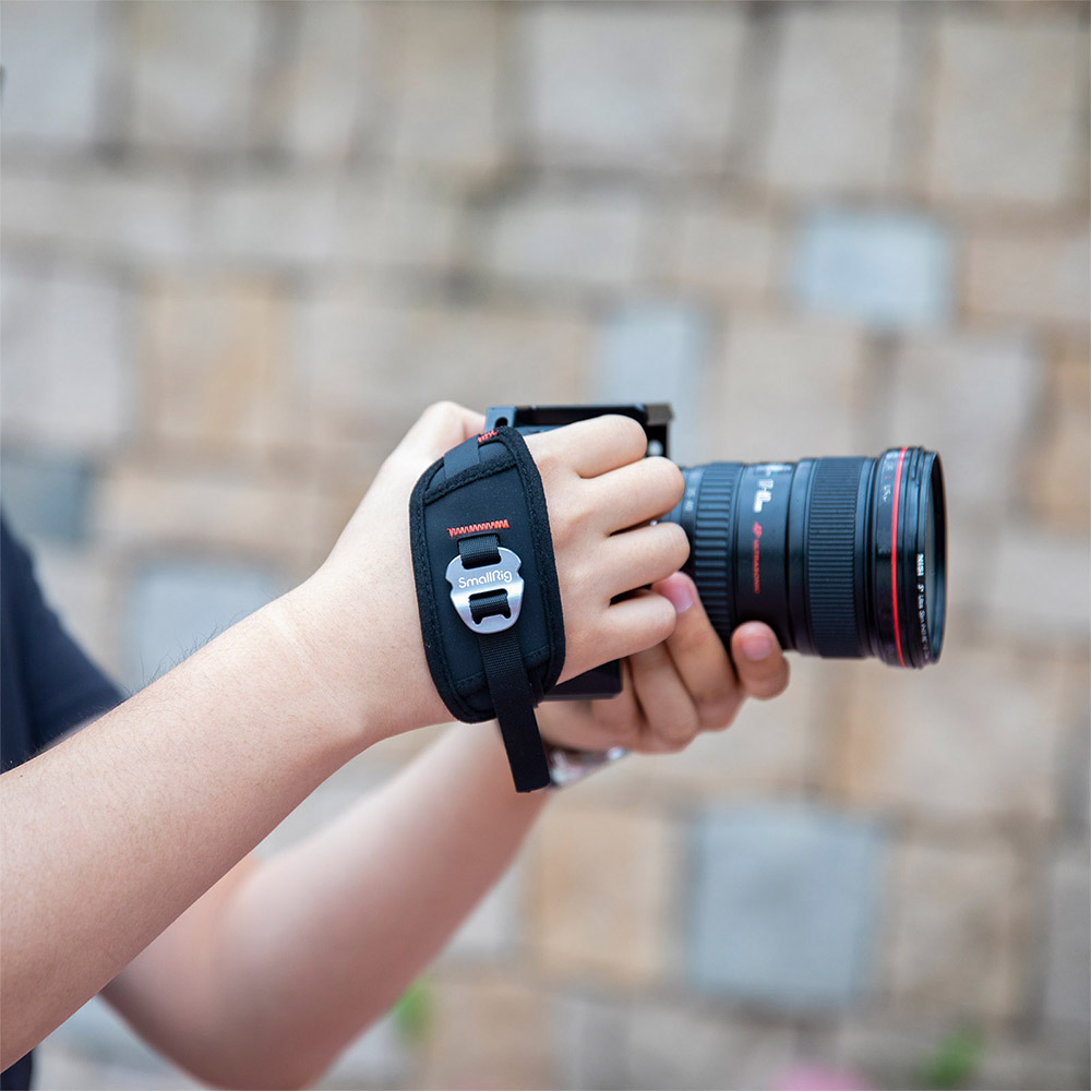 手腕帶於使用相機兔籠或外置握柄進行手持拍攝時,能有效地保護相機的配備安全,並加強拍攝穩定性。尼龍織帶的寬度為12mm,能兼容上下端均帶有寬度不超過12mm腕帶孔槽的相機兔籠或者外置握柄,例如用於BMPCC 4K和6K 2203B的兔籠,或SmallRig鋁製通用側握柄HSS2425等。手腕帶錶面採用高強度PU材料,耐磨耐用;填充優質EVA材料,搭配超纖面料,帶來更好的緩衝抗震體驗及優異的吸濕排汗效果,保持手部乾爽舒適。手腕帶還能快速調整鬆緊,只需輕輕一拉,即可完成。