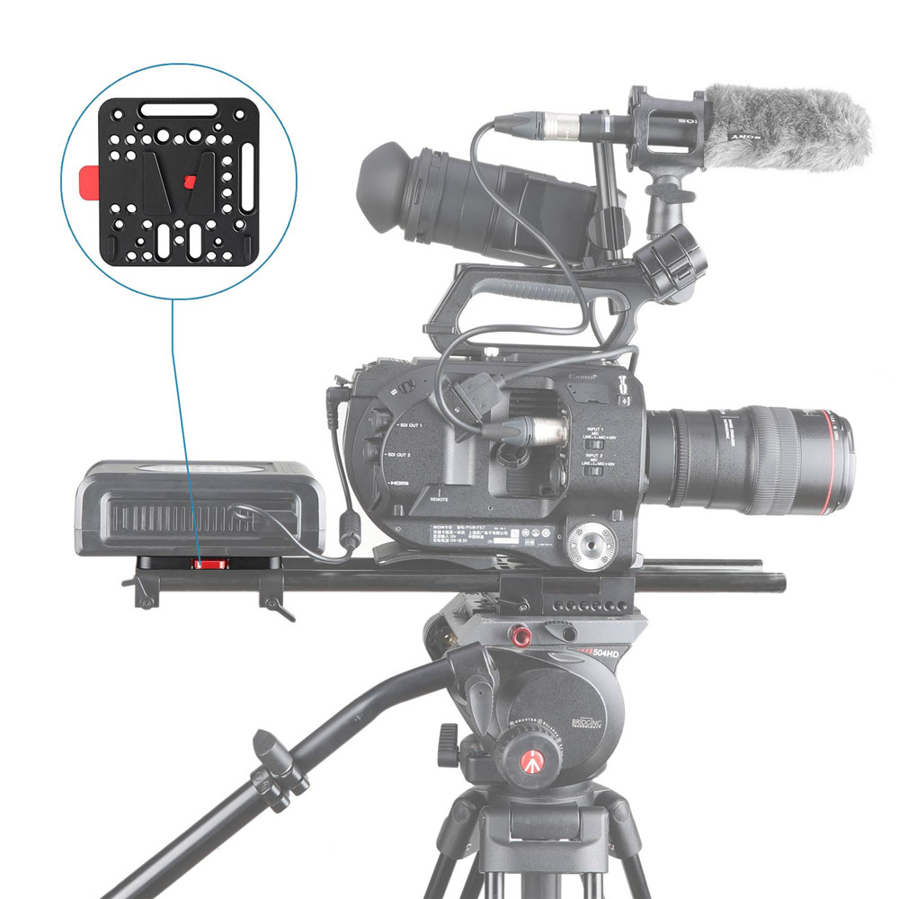 SmallRig V型鎖孔電池掛版 1846 標準V型鎖的快拆。帶有一個母V型基座和一個公V型鎖。母V型基座上有多個安裝孔和凹槽,可直接連接到SmallRig相機固定框架套件、監視器框架或肩墊安裝架上。或安裝到專為DJI Ronin M / MX設計的SmallRig 25mm桿夾1860上。通過此設置,您可以將V型安裝電池放在Ronin上,為所有配件供電,減少相機在雲台上的重量。當安裝V型安裝電池時,兩個突出部分可防止其鬆脫。還具有三個M3孔的V型鎖可代替V型安裝電池隨附的原始V型鎖。